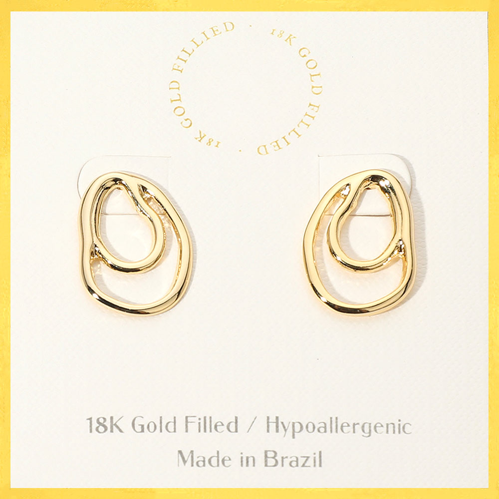 Details • Size : 0.7" X 0.9" • Post Back • These 18K gold filled stud earrings feature an elegant abstract loop design that adds a modern, artistic touch to any outfit. Lightweight and hypoallergenic for comfortable wear, they offer timeless sophistication. Expertly crafted in Brazil for everyday elegance and style. • Gold Filled • Hypoallergenic • Lead and Nickel Compliant • Made In Brazil