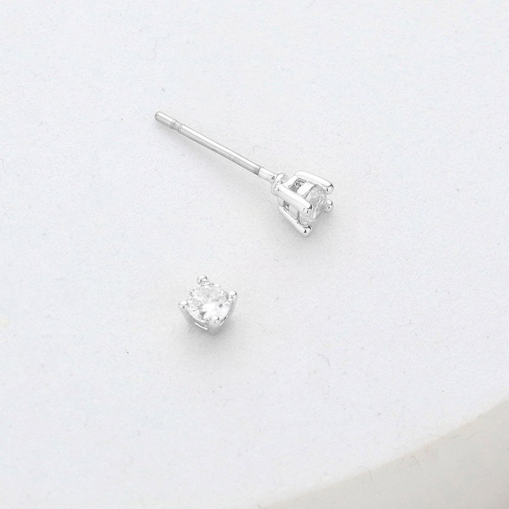 3mm Round Cut Crystal Cubic Zirconia CZ Stud Earrings with Clear Box