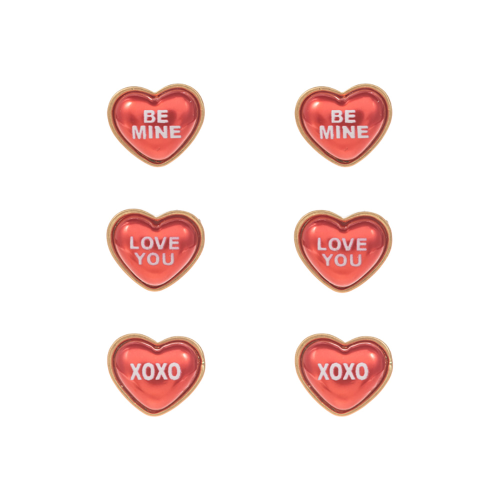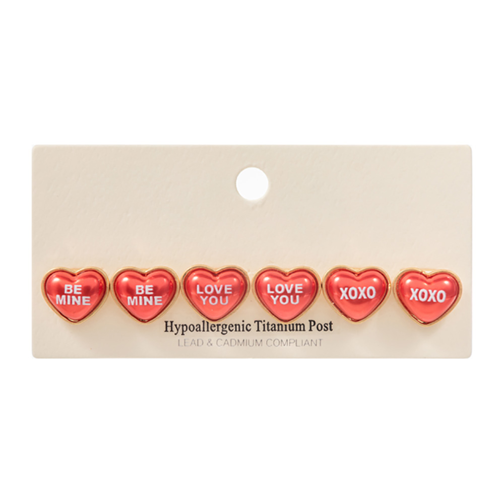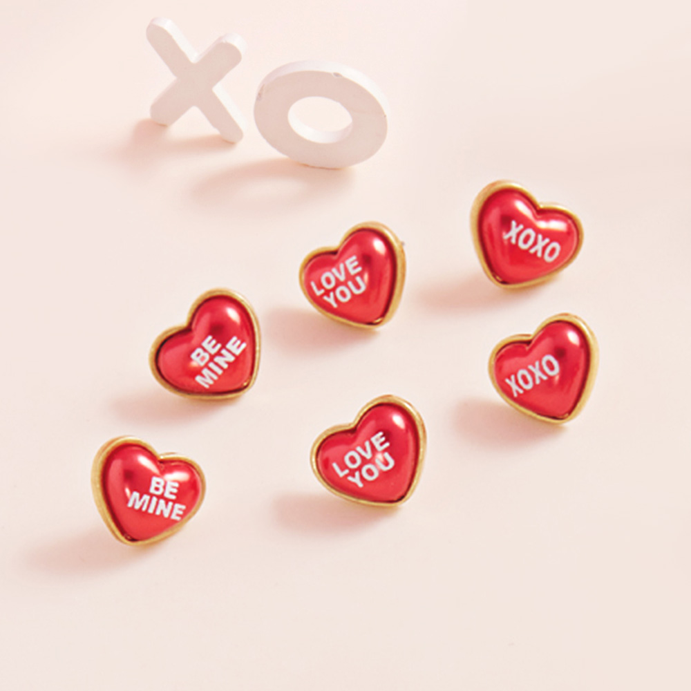 3Pairs - BE MINE LOVE YOU XOXO Message Heart Pearl Stud Earrings