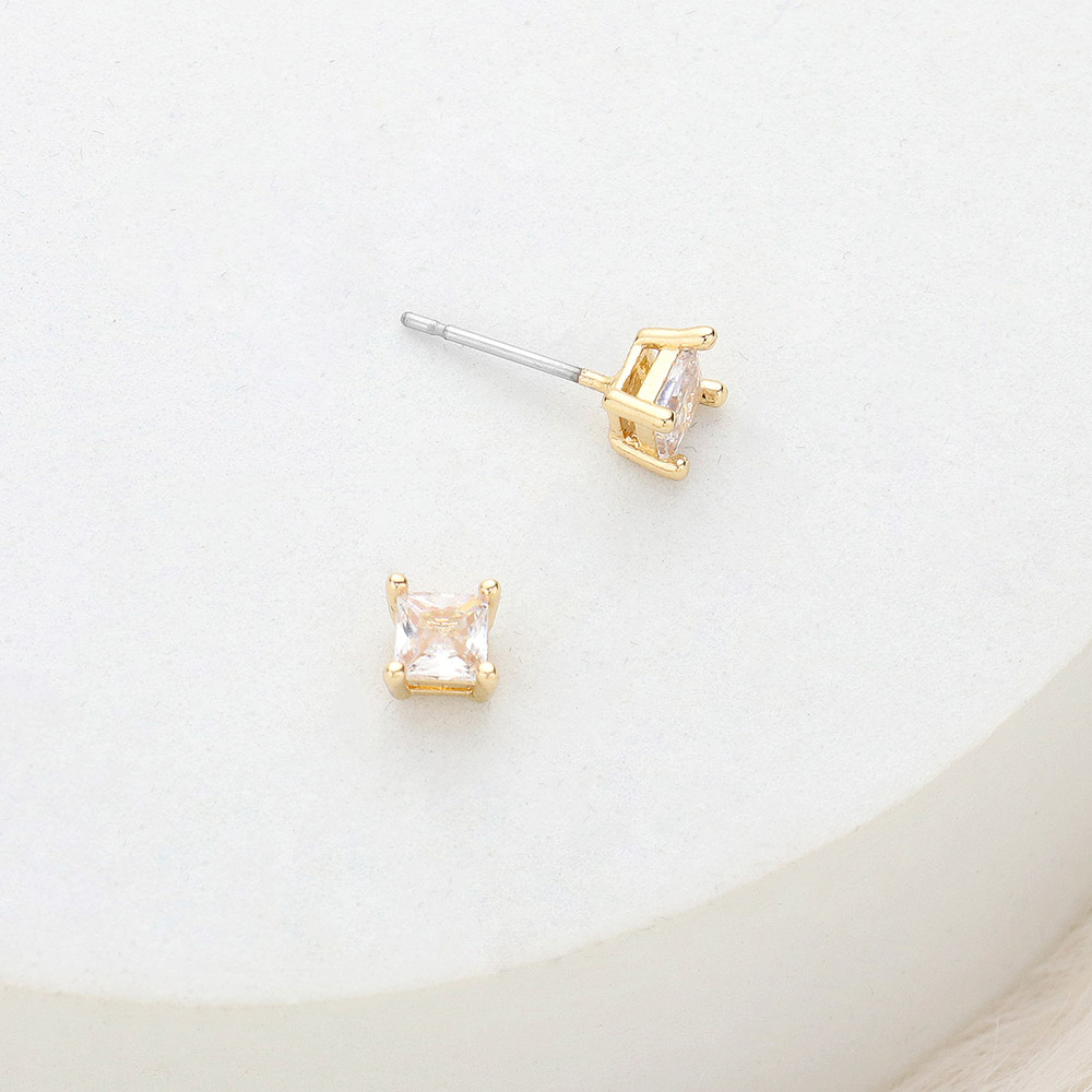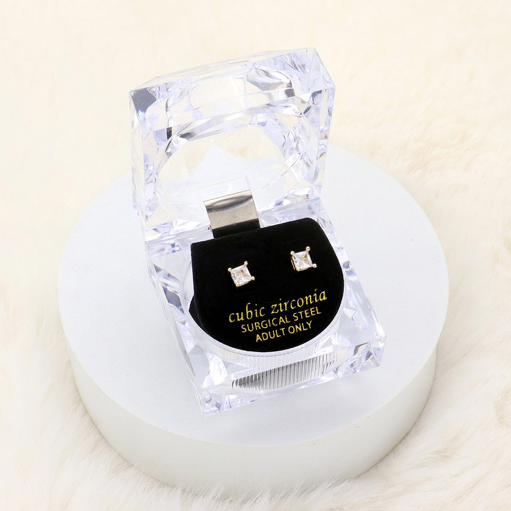 4mm Square Crystal Cubic Zirconia CZ Stud Earrings with Clear Box