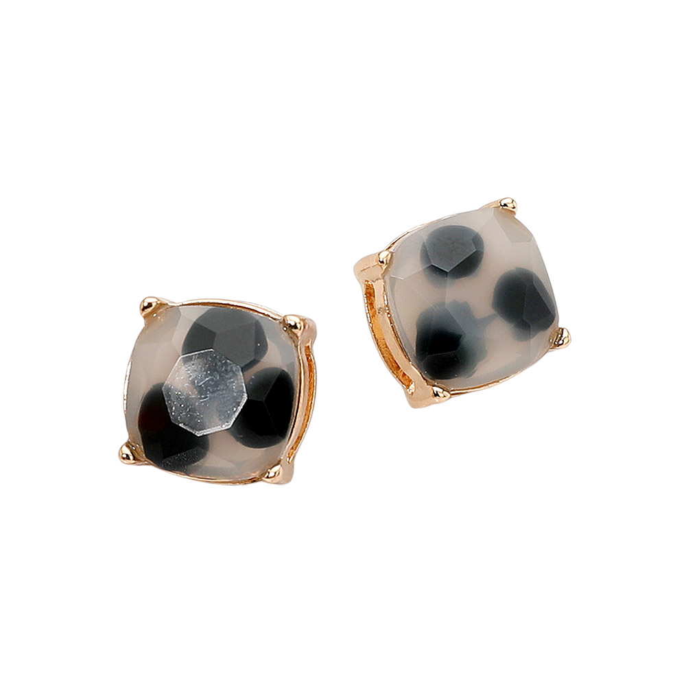 Details • Size : 0.5" X 0.5" • Post Back • Add a touch of refined style with these faceted animal print cushion stud earrings. Featuring a softly rounded shape and elegant gemstone-inspired detailing, they bring a sophisticated sparkle perfect for day or night. Their classic yet modern design makes them a versatile favorite for any occasion. • Lead and Nickel Compliant