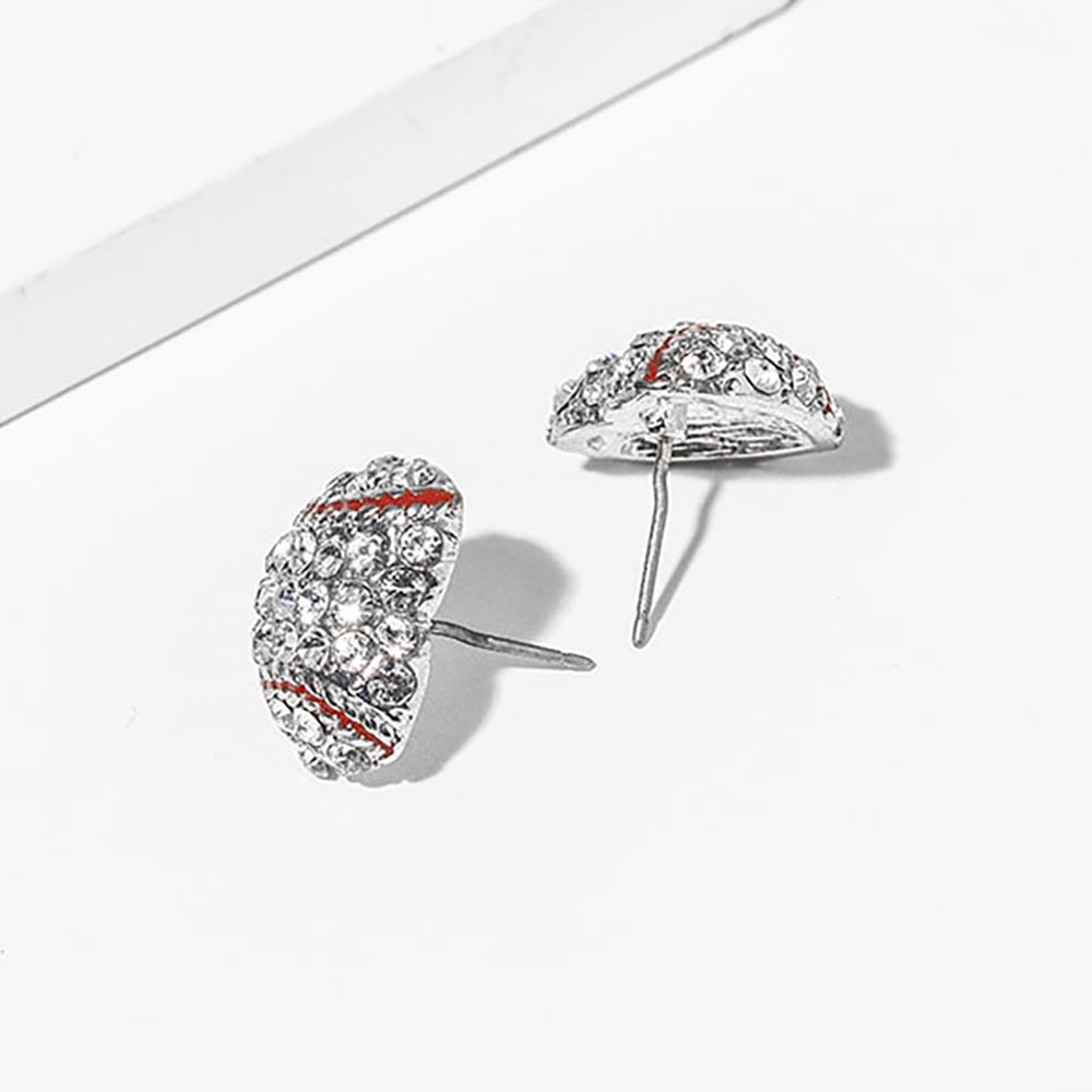 Details • Size : 0.7" X 0.8" • Post Back • Playful heart-shaped stud earrings inspired by classic baseball details, featuring a sparkling crystal-covered surface for eye-catching shine. A fun statement accessory perfect for sports fans, game day outfits, themed collections, and novelty jewelry displays with a bold, fashionable twist. • Lead and Nickel Compliant
