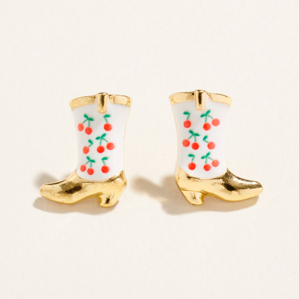 Details • Size : 0.6" X 0.7" • Titanium Post Back • Charming boot-shaped stud earrings featuring a playful fruit motif and glossy detailing for a standout yet lightweight accent. Designed for comfortable daily wear, these whimsical studs add personality to casual outfits, themed looks, or giftable accessory collections. • Hypoallergenic • Lead and Nickel Compliant