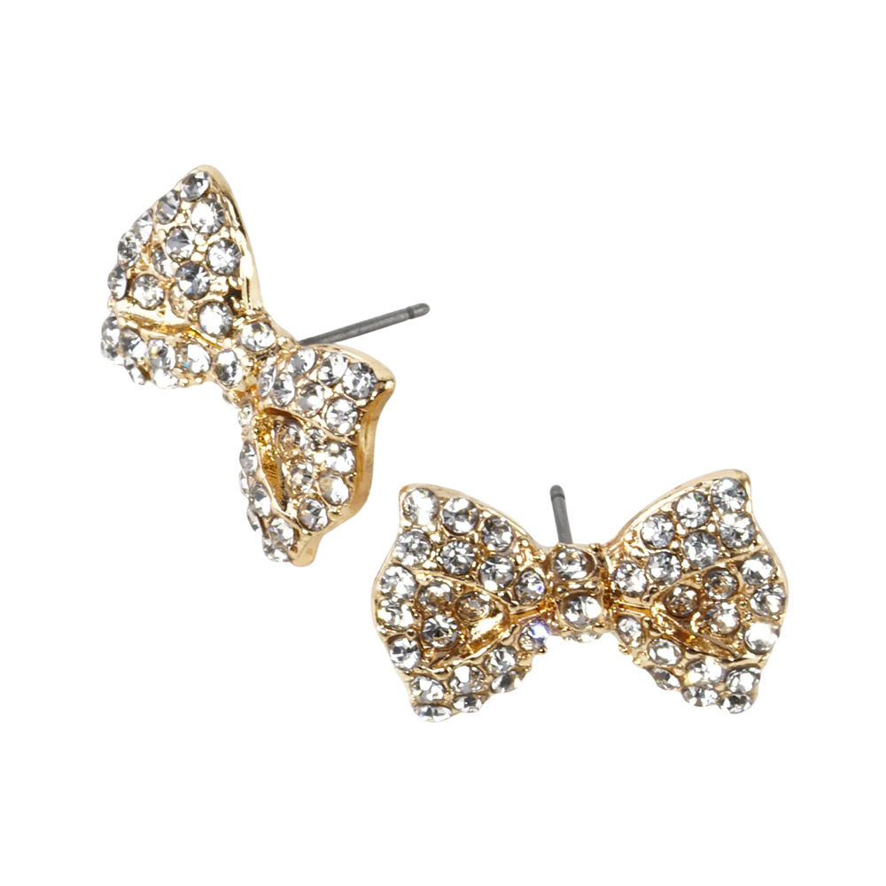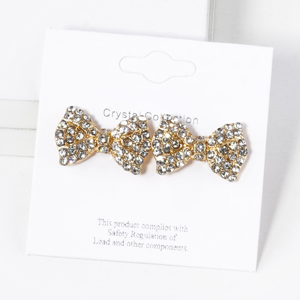 Details • Size : 0.75" X 0.5" • Post Back • Add a touch of glamour with the Crystal Bow Stud Earrings, featuring a radiant design that captures light beautifully. Perfect for both casual and formal looks, these sparkling earrings offer timeless elegance and charm, making them a must-have accessory for any jewelry collection. • Lead and Nickel Compliant