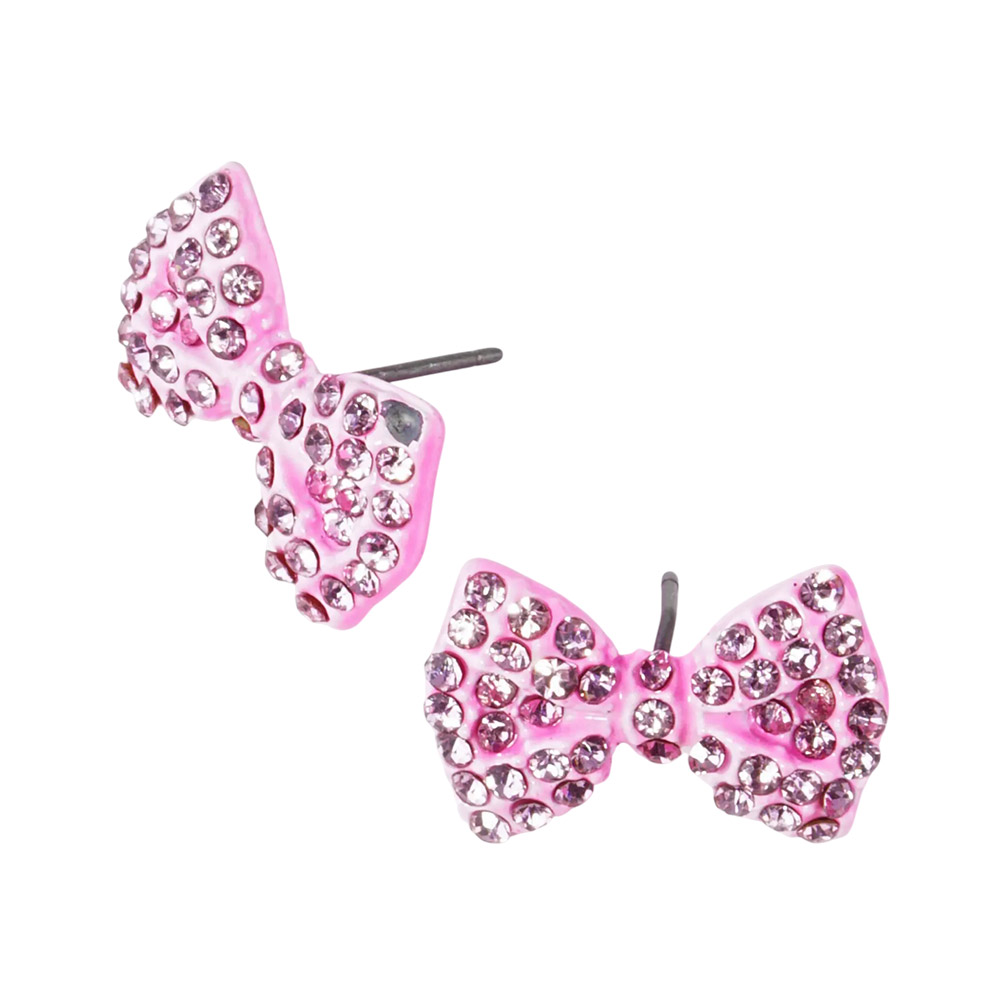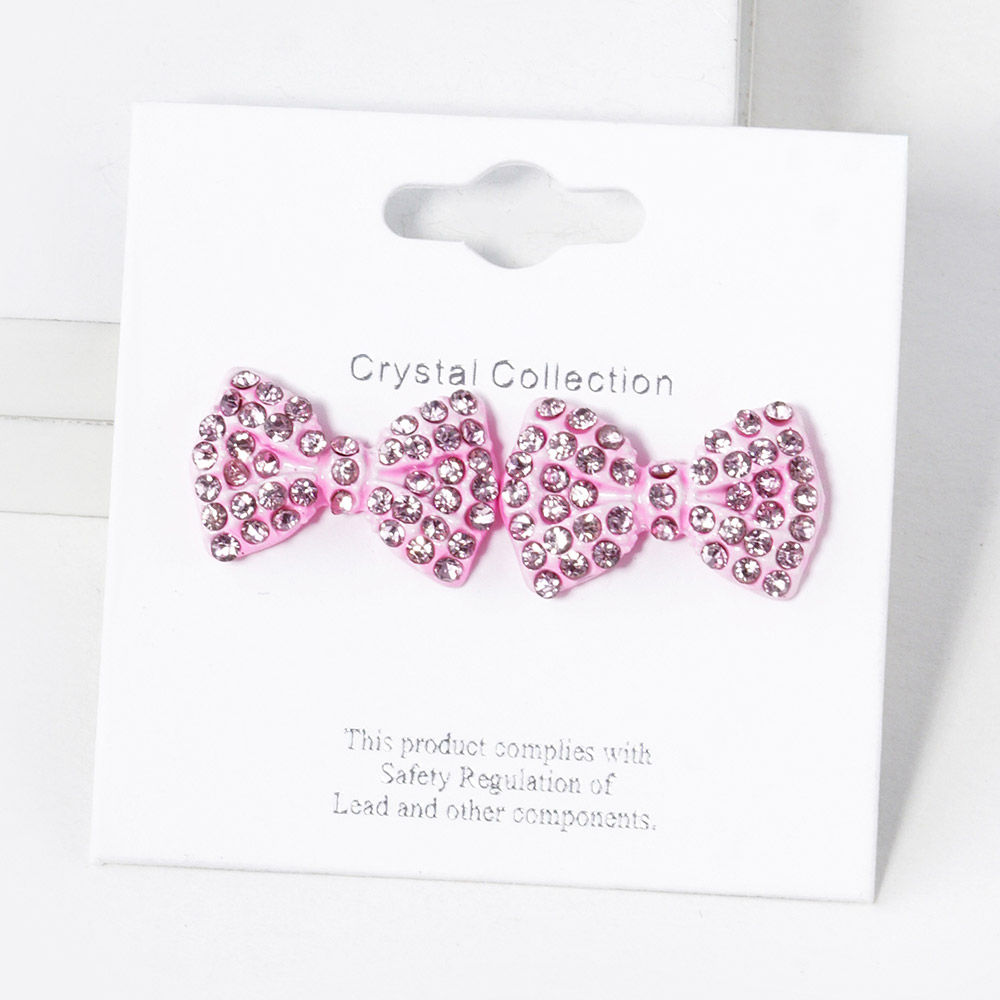 Details • Size : 0.75" X 0.5" • Post Back • Add a touch of glamour with the Crystal Bow Stud Earrings, featuring a radiant design that captures light beautifully. Perfect for both casual and formal looks, these sparkling earrings offer timeless elegance and charm, making them a must-have accessory for any jewelry collection. • Lead and Nickel Compliant