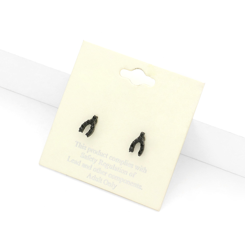 • These wishbone stud earrings bring a touch of symbolism and style, representing luck and positivity. Designed with a refined, petite silhouette and detailed texture, they make a versatile accessory that complements both casual and elegant looks with subtle charm.