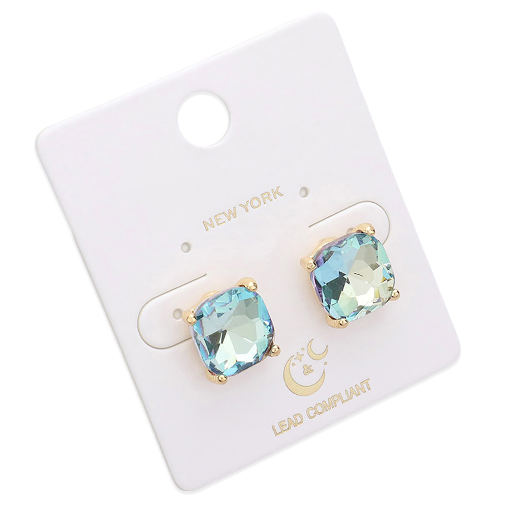 Cushion Square Stone Stud Evening Earrings