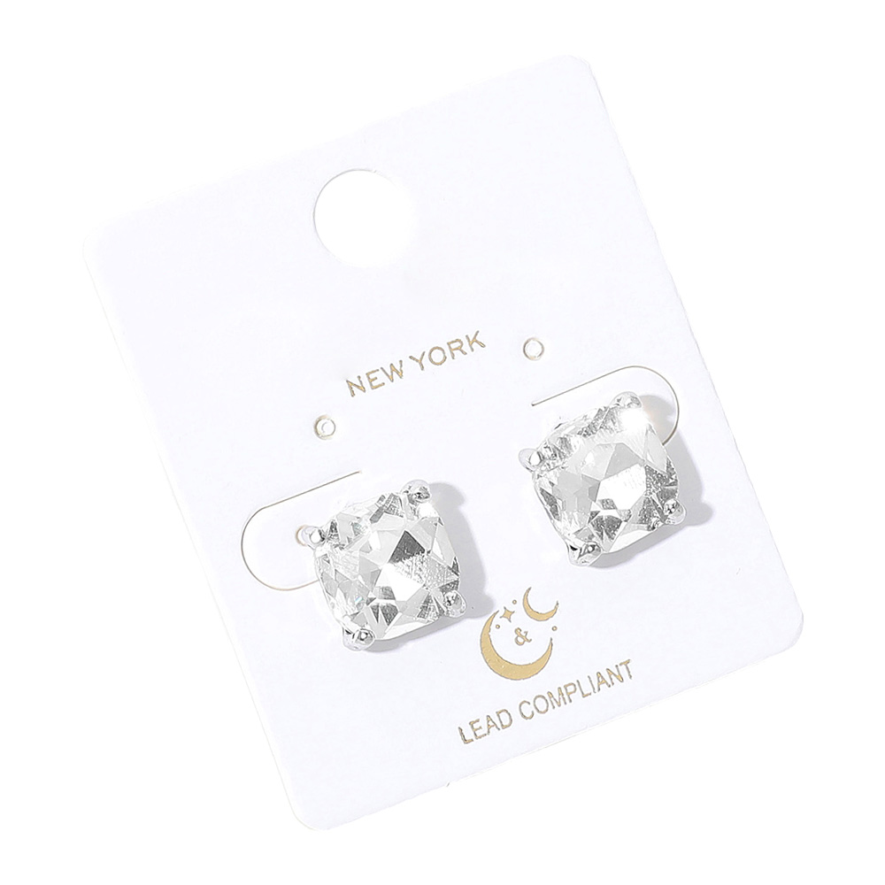 • Brighten up your style with these cushion-cut crystal stud earrings, set in a classic four-prong setting for maximum brilliance. Perfect for everyday wear or special occasions, these elegant studs add a vibrant, polished touch to any outfit with ease.