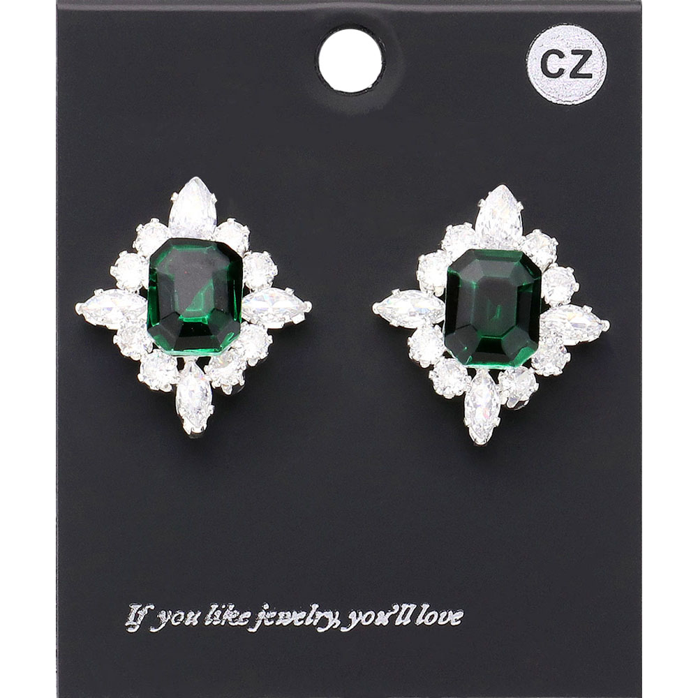 CZ Rectangle Stone Cluster Pointed Evening Stud Earrings