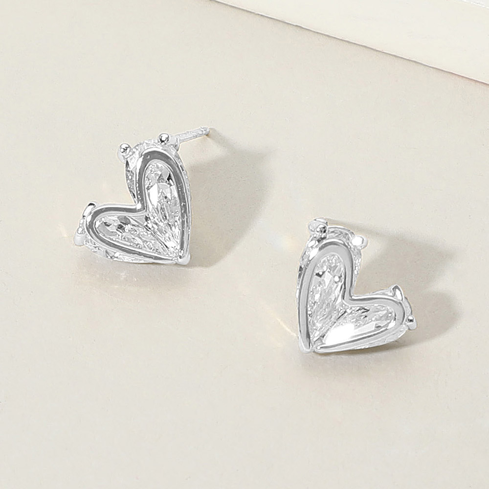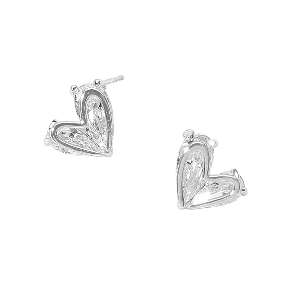 CZ Stone Heart Stud Earrings