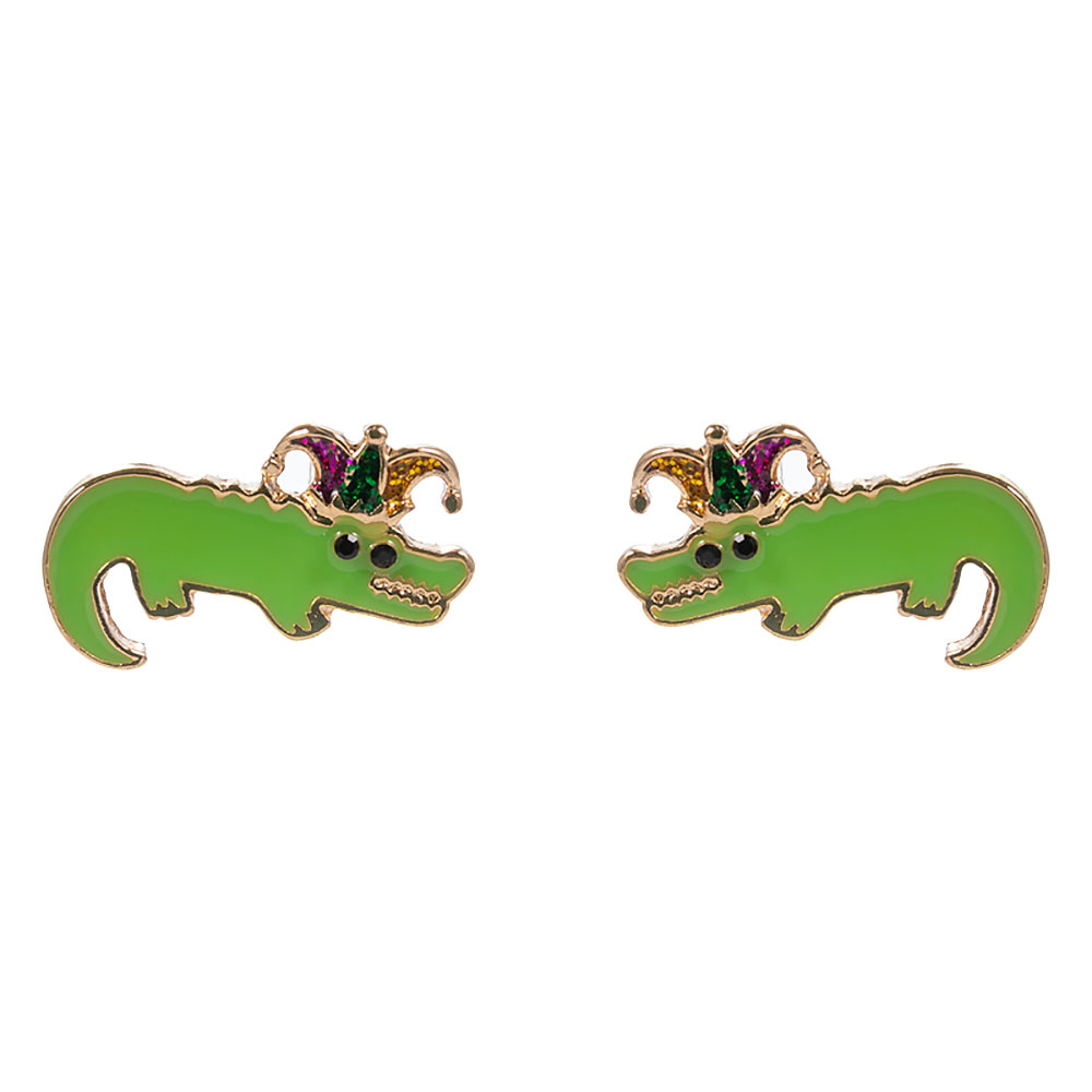 Details • Size : 0.8" X 0.5" • Titanium Post Back • Bring playful energy to your celebration with these festive alligator stud earrings. Designed with fun details and a whimsical touch, they capture a lively spirit perfect for parades, parties, and themed occasions. A charming accessory that stands out with personality and style. • Hypoallergenic • Lead and Nickel Compliant