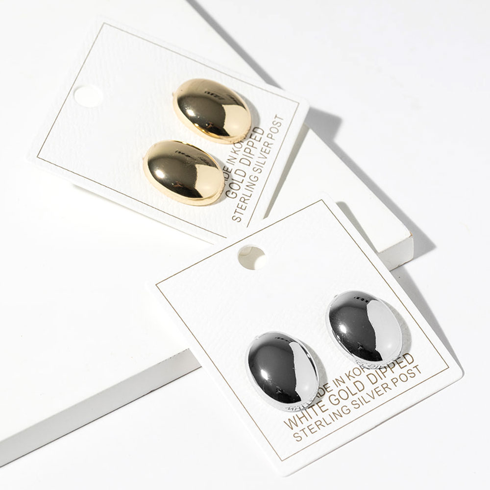 • Minimal oval stud earrings designed with a sleek, polished surface and softly rounded shape. These timeless studs deliver a refined, modern look that pairs easily with casual or dress styles, offering everyday versatility and effortless elegance for a wide range of fashion collections.