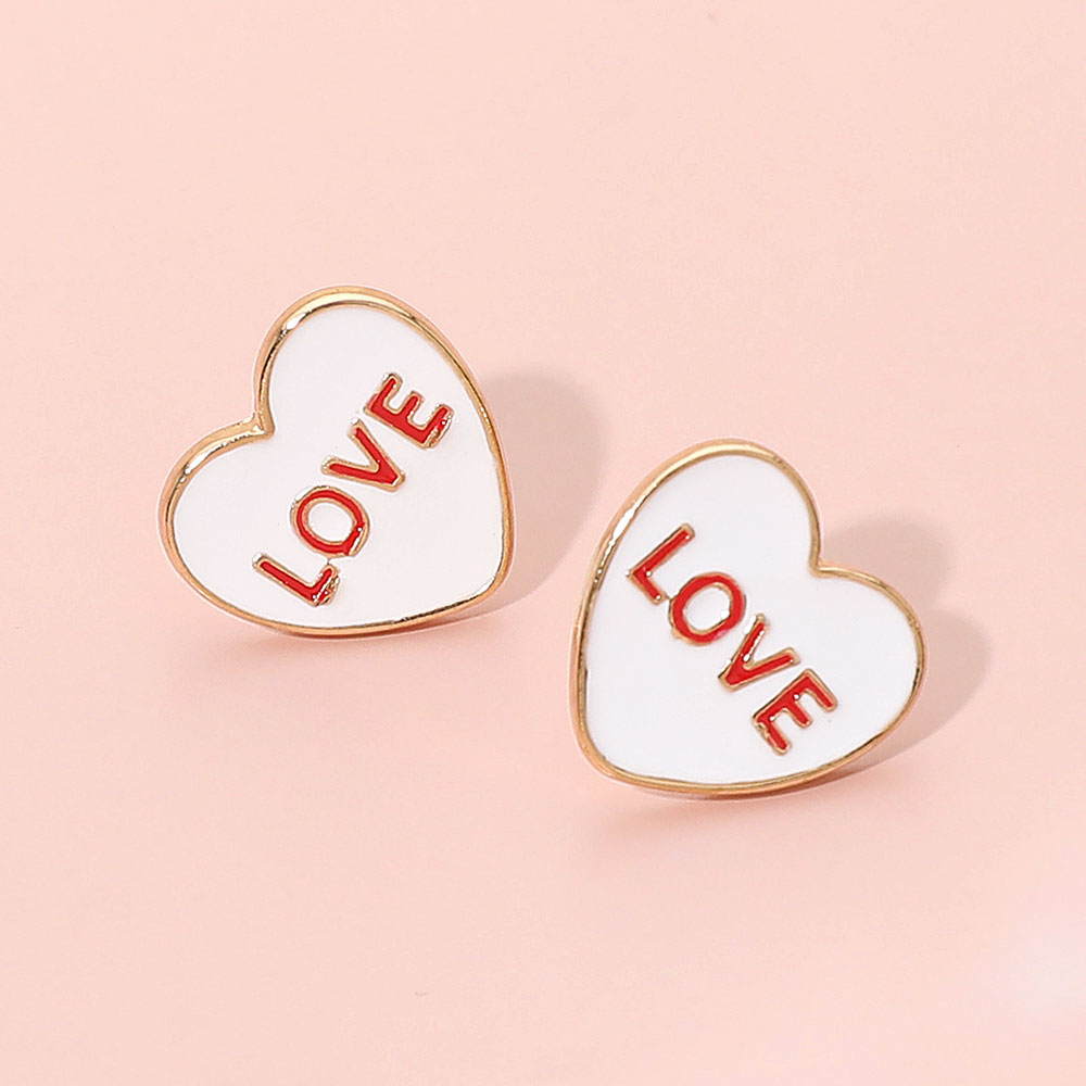 Details • Size : 0.6" X 0.6" • Post Back • Playful heart stud earrings featuring a bold LOVE motif with a sleek, modern silhouette that adds charm and personality to any outfit. Perfect for everyday styling or special moments, these lightweight statement studs bring a fun, romantic touch to both casual and dressed-up looks. • Lead and Nickel Compliant