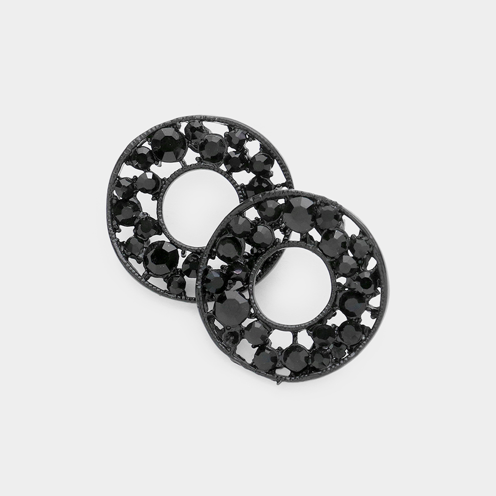Multi Stone Embellished Triple Heart Dangle Evening Earrings