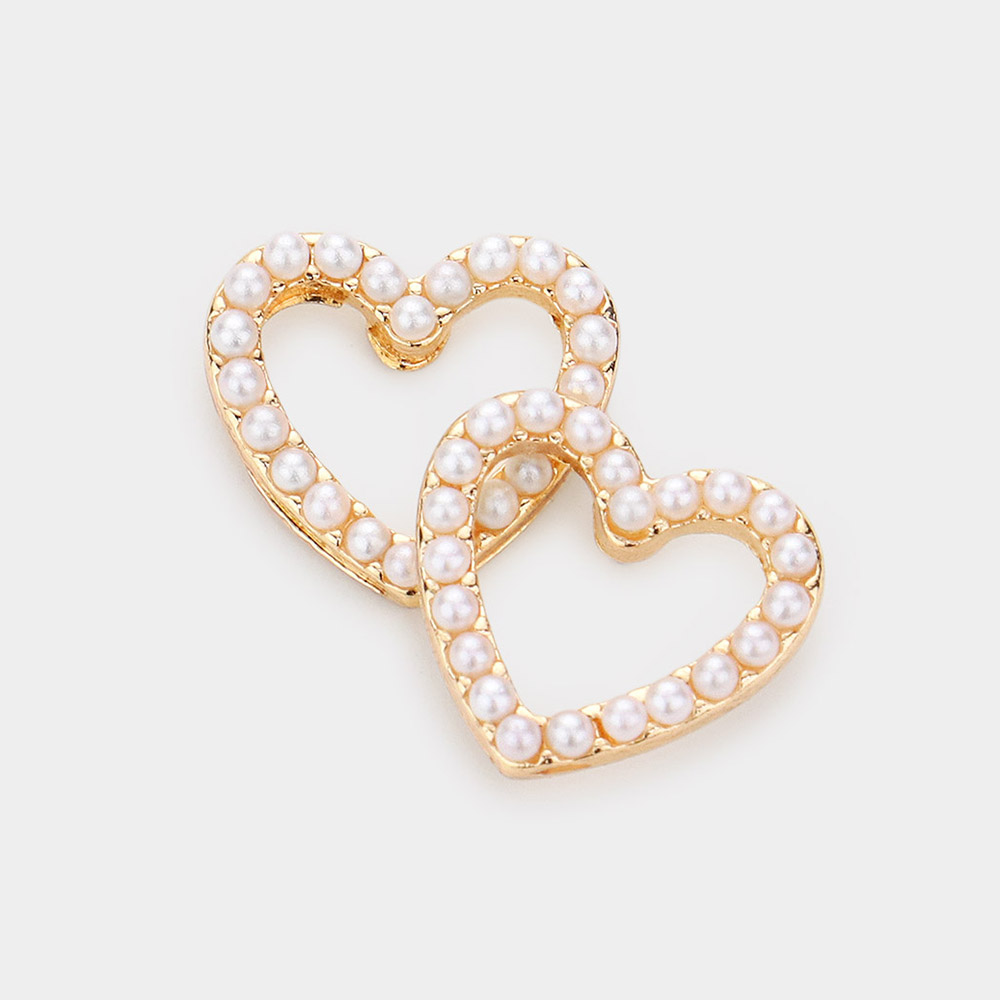 3Pairs - Silver Dipped Rhinestone Accent Heart Stud Earring Set
