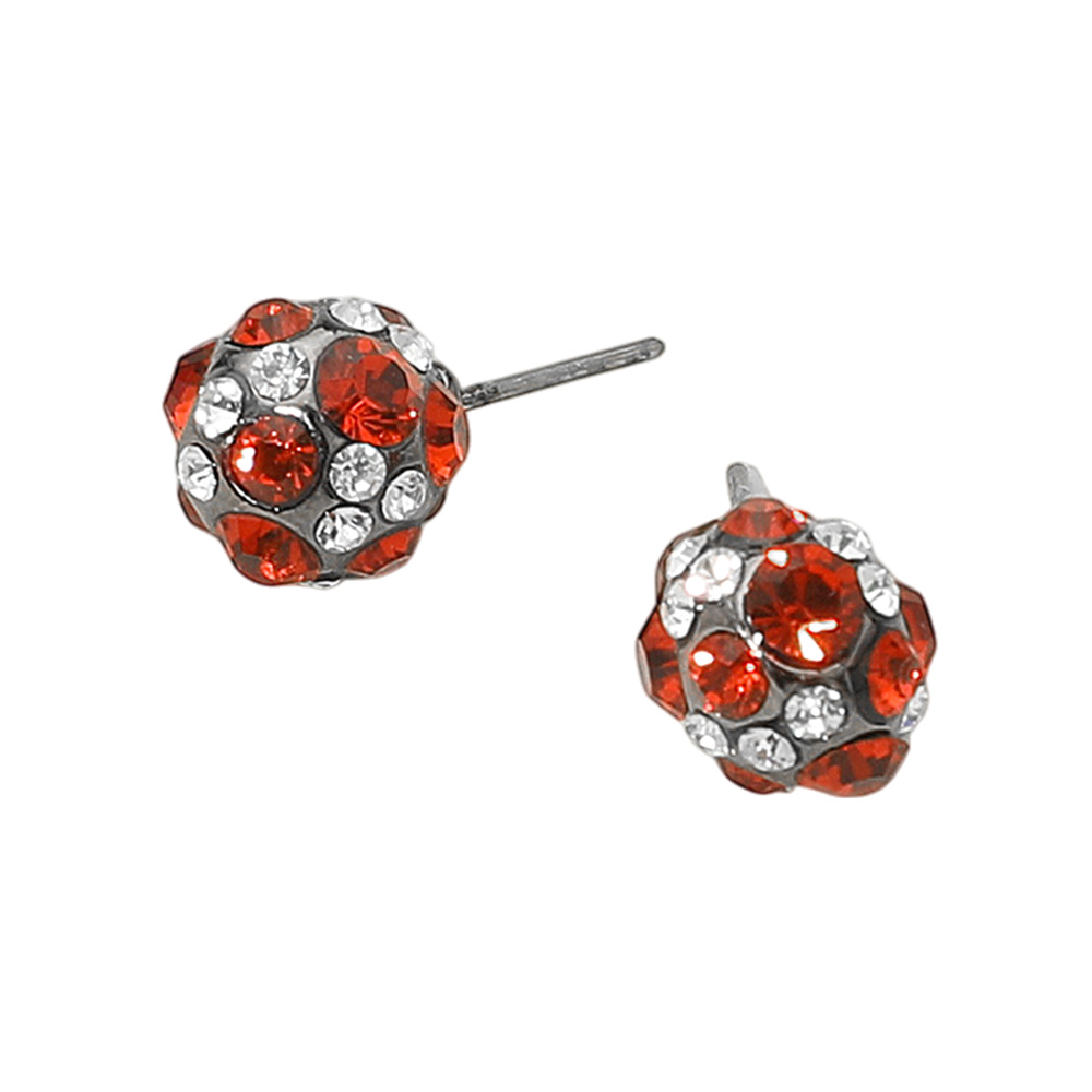 Details • Size : 0.4" X 0.4" • Post Back • Bold round stud earrings adorned with shimmering red and clear crystals in a clustered design. Lightweight and eye-catching, these earrings add vibrant sparkle to casual or formal looks. Perfect for gifting or accessorizing with a touch of modern glamour for everyday wear or special occasions. • Lead and Nickel Compliant