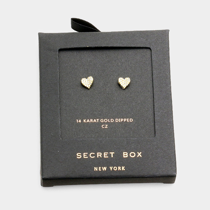 Secret Box _ 14K Gold Dipped CZ Heart Stud Earrings