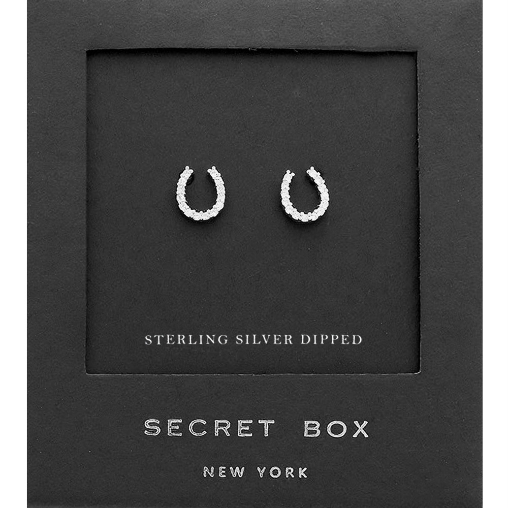 Details • Size : 0.25" X 0.3" • Post Back • Charming horseshoe stud earrings featuring a refined, sparkly clustered-stone look. Their small, elegant shape adds a touch of good-luck symbolism to any outfit. Perfect for daily wear, special occasions, or gifting, offering a timeless and stylish accent. • Sterling Silver Dipped