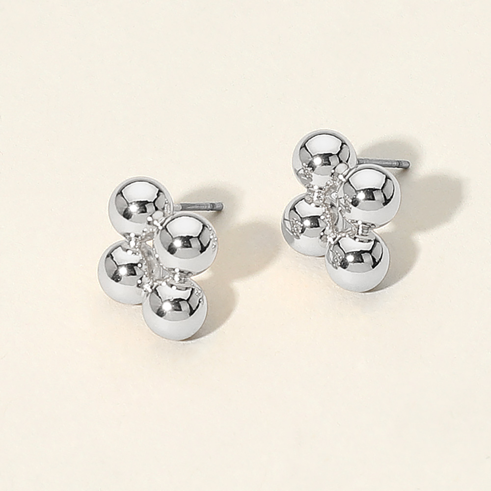 3PCS - Metal Cross Charm Pointed Metal Ball Beaded Stretch Multi Layered Bracelets