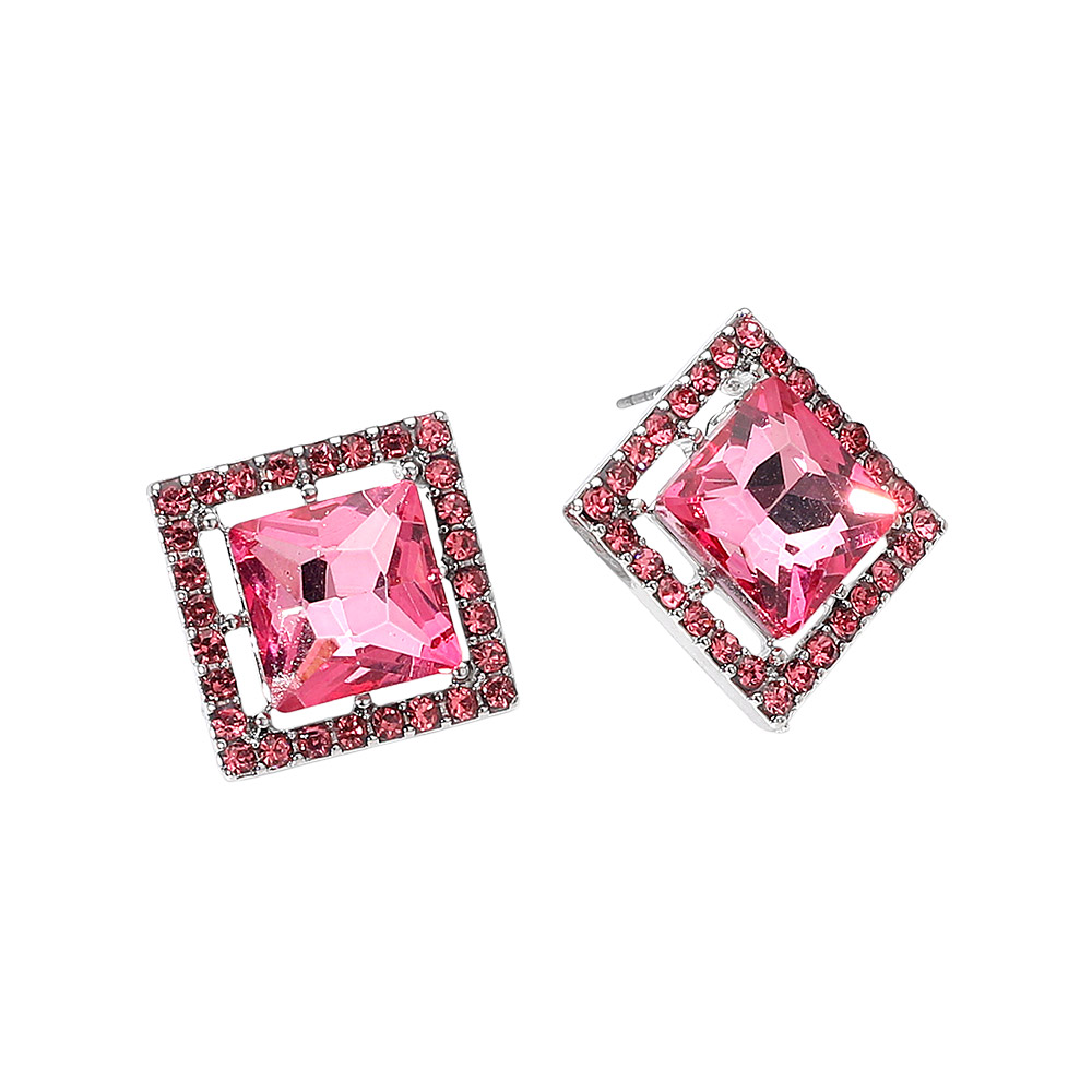 Details • Size : 1" X 1" • Post Back • Elegant square-cut gemstone stud earrings featuring a framed design with sparkling accent stones. A chic and modern accessory that adds refined shine to both everyday outfits and special occasions. • Lead and Nickel Compliant