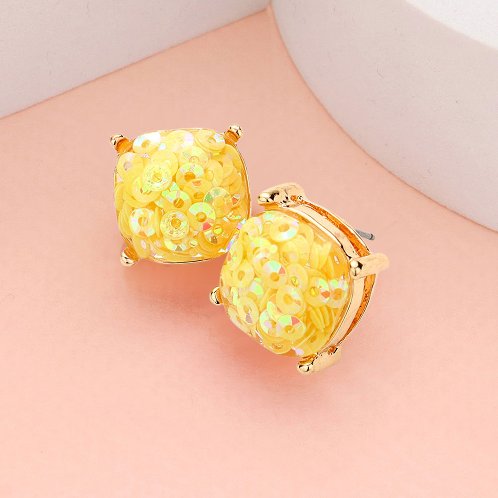 • Elevate your everyday style with these shimmering square stud earrings featuring a radiant cushion design. Their sequin-like sparkle catches the light beautifully, adding a modern yet elegant flair that’s perfect for both casual outings and evening occasions.