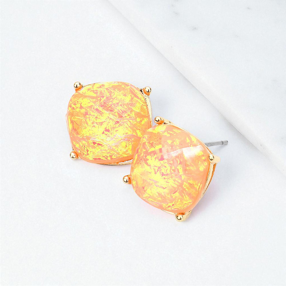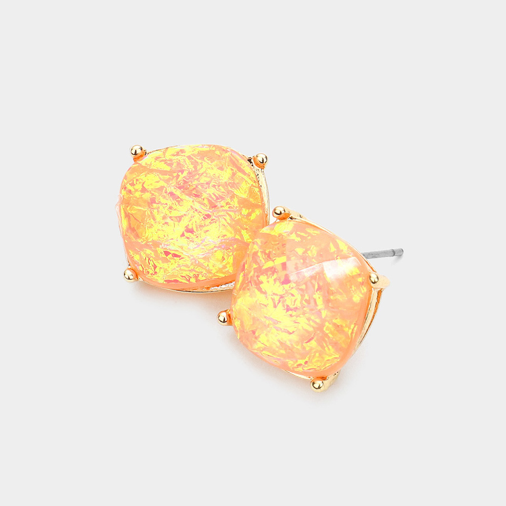Floral Stone Pearl Leaf Accent Frame Dangle Earrings