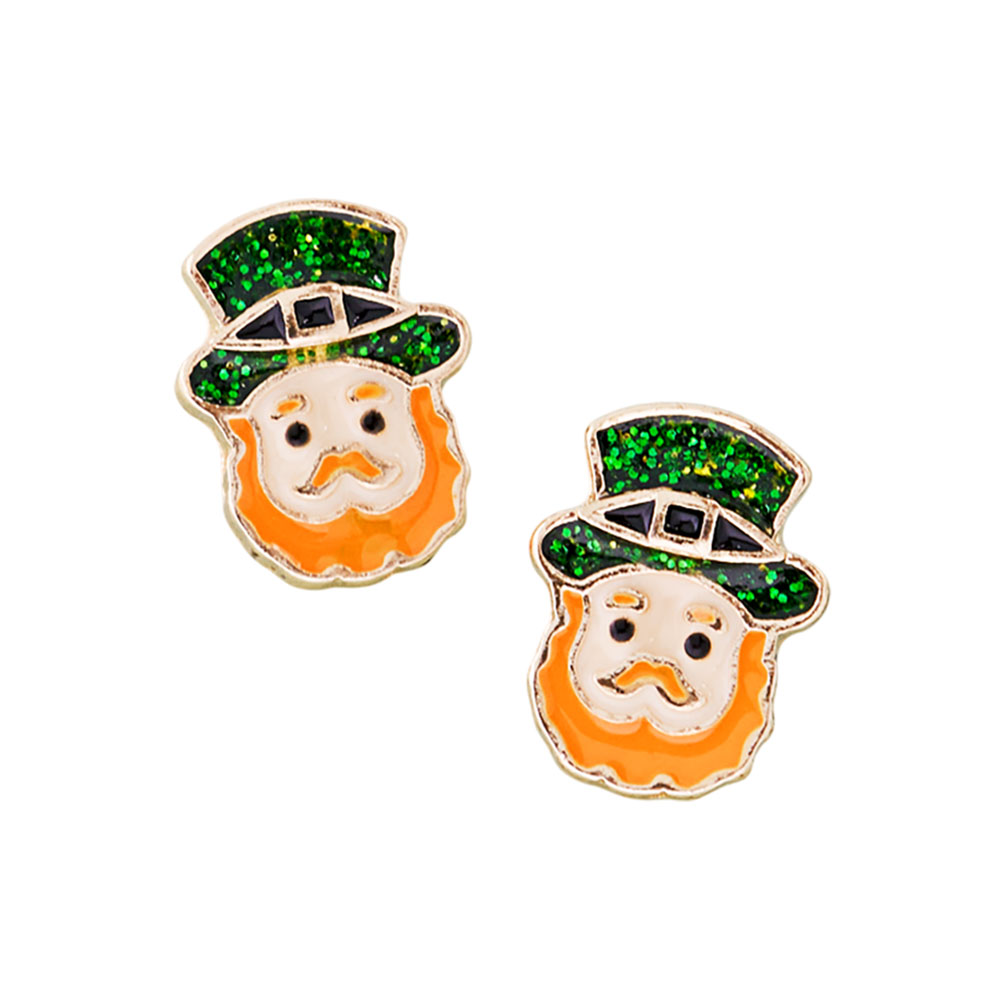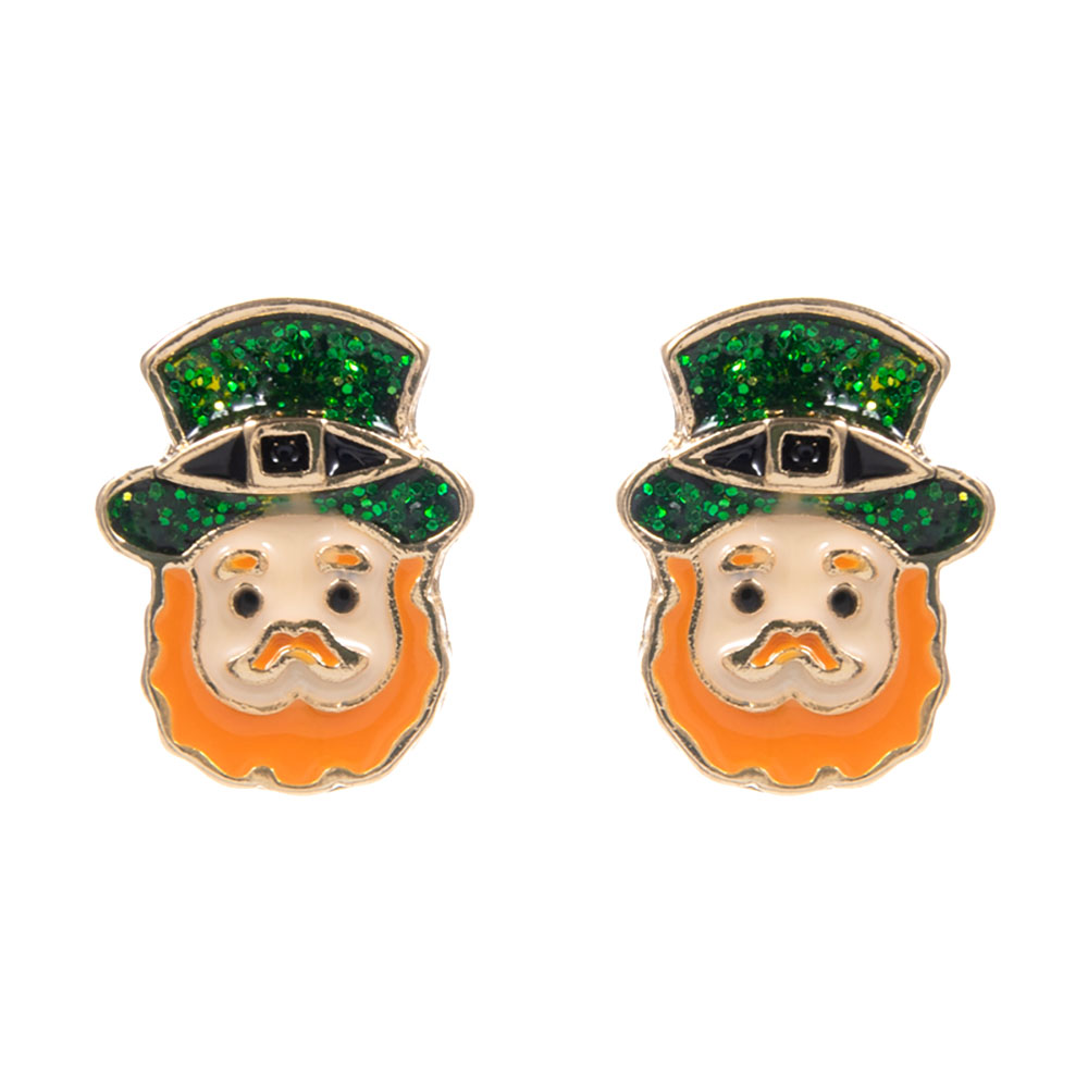 Details • Size : 0.3" X 0.5" • Titanium Post Back • Whimsical stud earrings featuring a playful leprechaun face motif designed to add charm to festive outfits, costume looks, or everyday novelty styling. Lightweight and comfortable for extended wear, they make a fun seasonal accessory or cheerful gift choice. • Hypoallergenic • Lead and Nickel Compliant