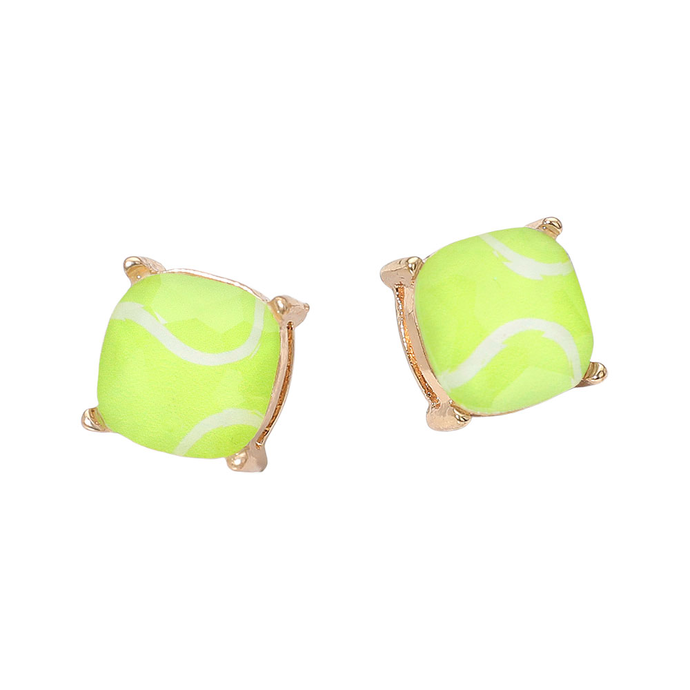 Details • Size : 0.5" X 0.5" • Post Back • Add a playful, athletic touch to your look with these tennis stud earrings. Designed to resemble a classic game ball, they’re perfect for sports lovers and casual outfits, combining sporty charm with everyday elegance in a lightweight and comfortable design. • Lead and Nickel Compliant
