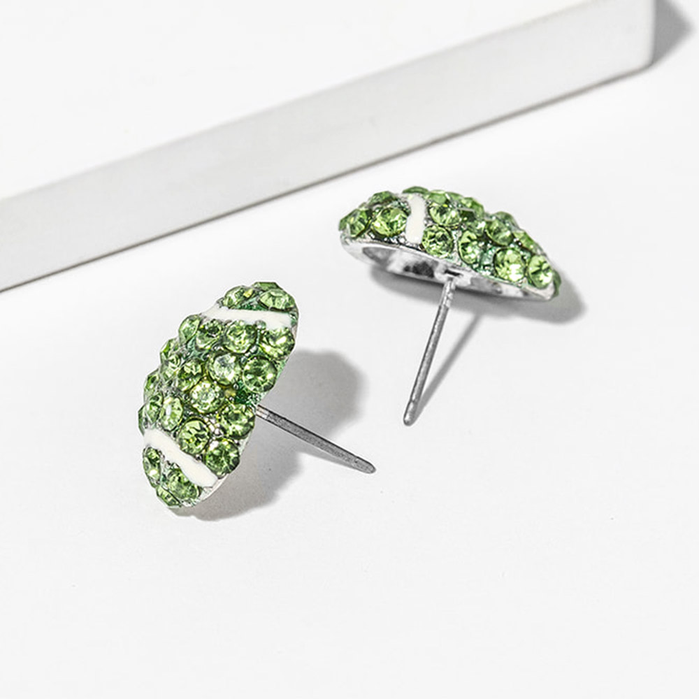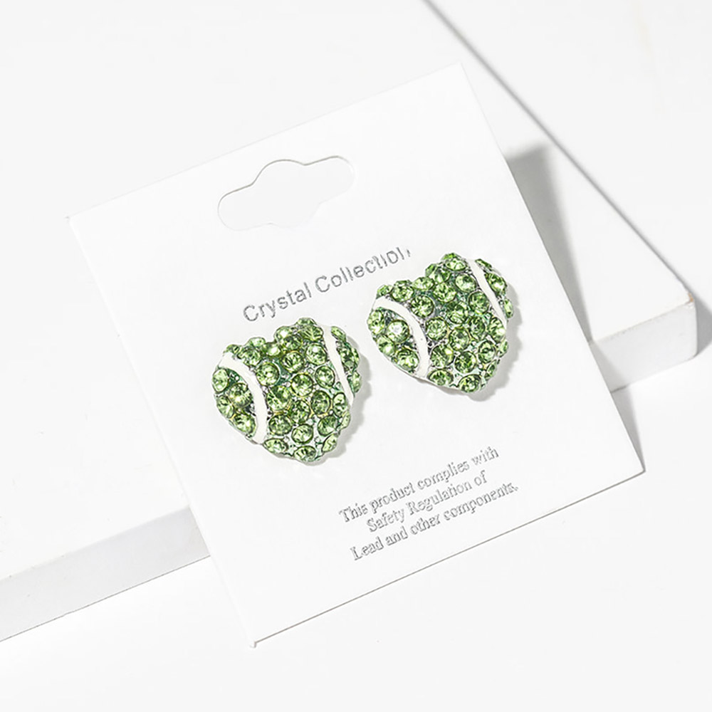 Details • Size : 0.7" X 0.8" • Post Back • These crystal sport ball theme stud earrings feature a brilliant pave design that sparkles with every movement. Their chic, modern silhouette adds a touch of luxury to any outfit, making them the perfect choice for both daily wear and special occasions that call for effortless sophistication. • Lead and Nickel Compliant