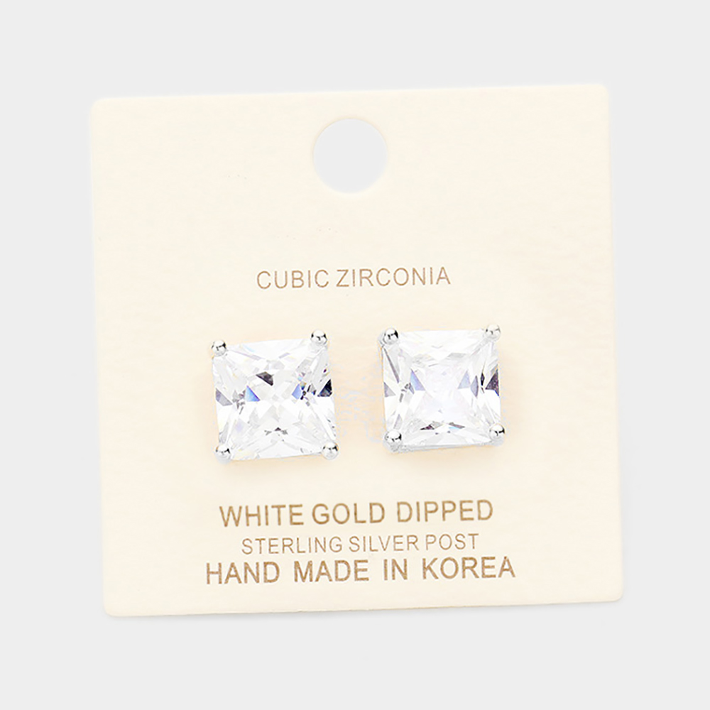 White Gold Dipped 11mm Cubic Zirconia Square Stud Earrings