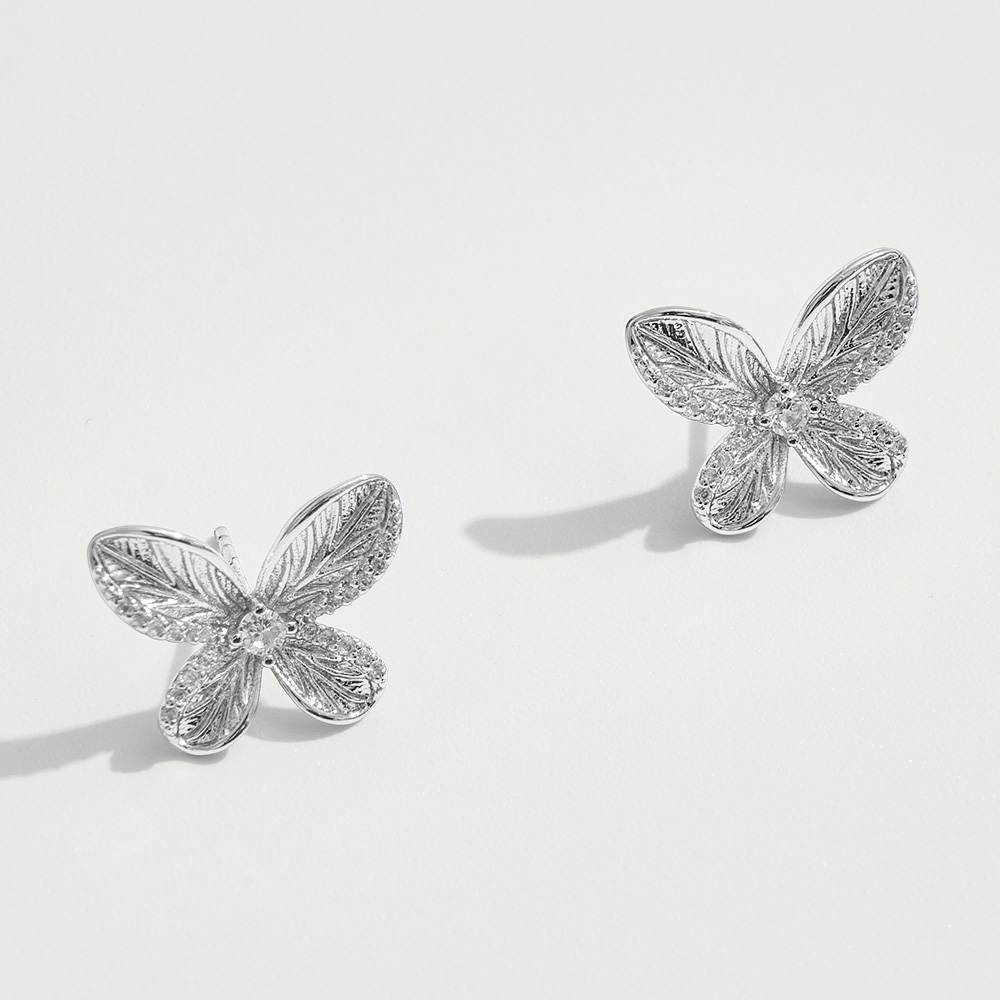 Details • Size : 0.7" X 0.75" • Post Back • Delicate butterfly crystal stud earrings designed with sparkling accents and detailed wings for a feminine touch. Perfect for everyday wear or gifting, these earrings bring charm, elegance, and a hint of sparkle to any outfit, making them a versatile jewelry box essential. • Brass • CZ Cubic Zirconia • Gold Dipped • Hypoallergenic • Lead and Nickel Compliant • Made In Korea
