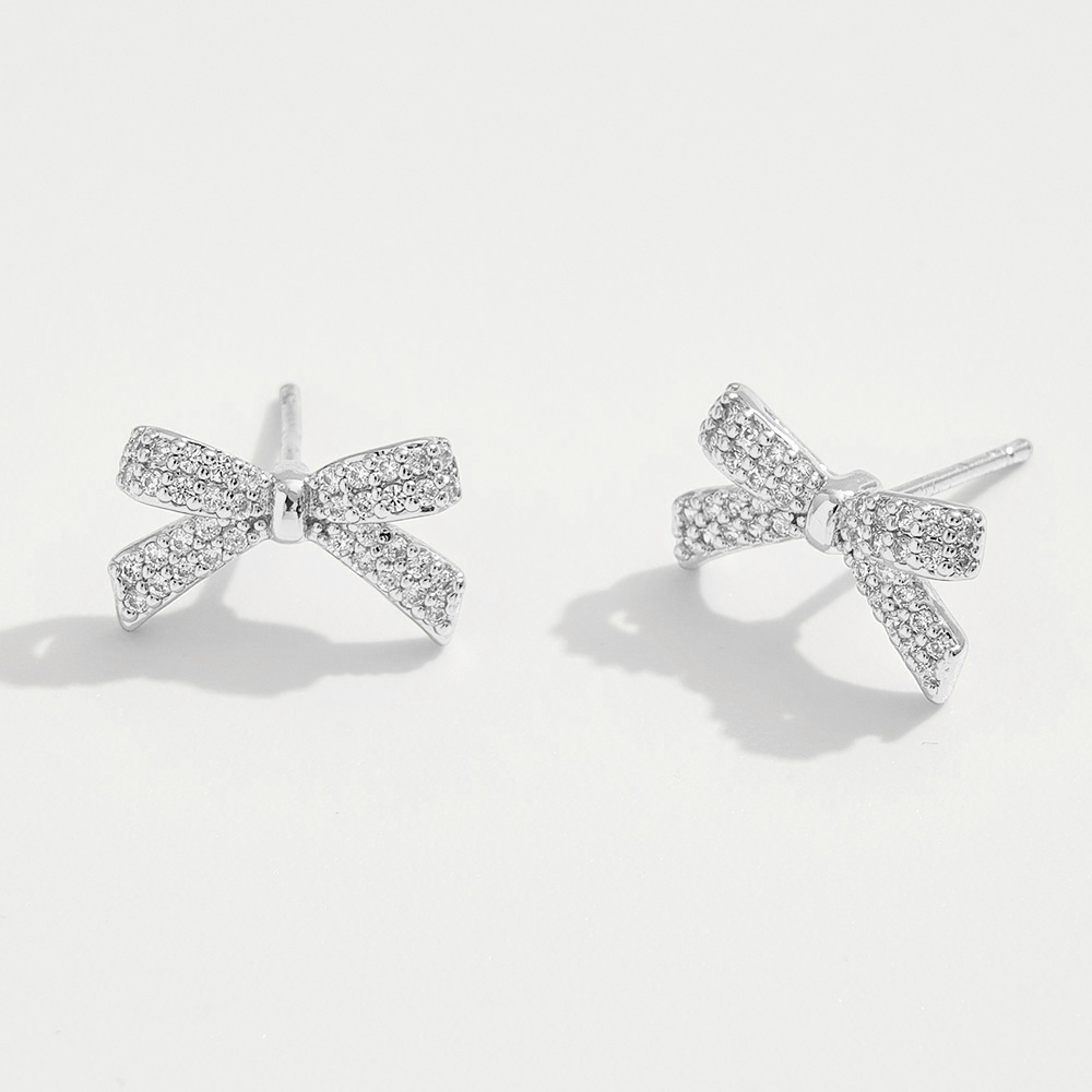 Details • Size : 0.6" X 0.3" • Post Back • These crystal bow stud earrings bring a sparkling, feminine touch to any outfit. Designed with shimmering stones in a delicate bow silhouette, they’re perfect for both casual and dressy occasions, adding elegance and charm to your jewelry collection. • Brass • CZ Cubic Zirconia • Gold Dipped • Lead and Nickel Compliant • Made In Korea