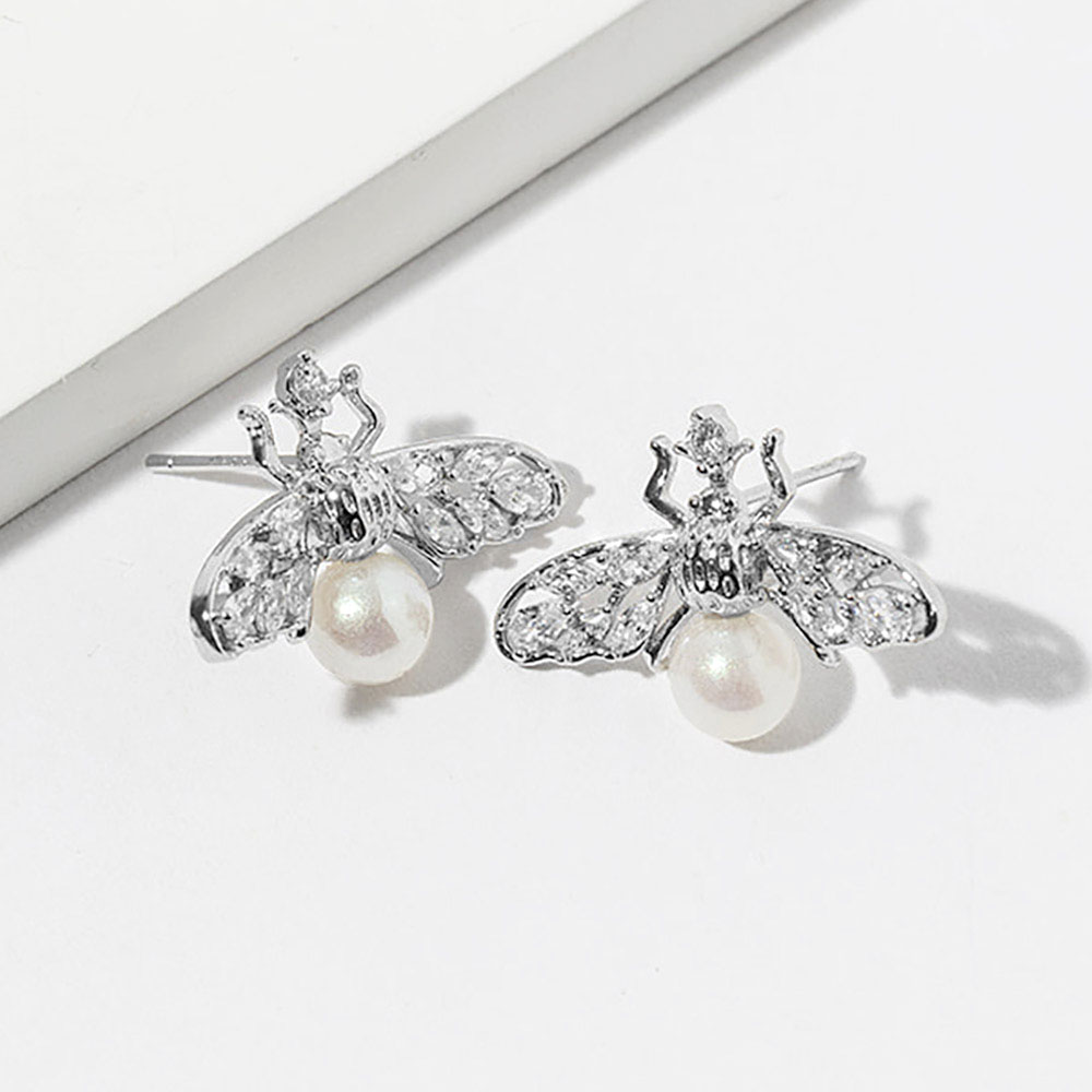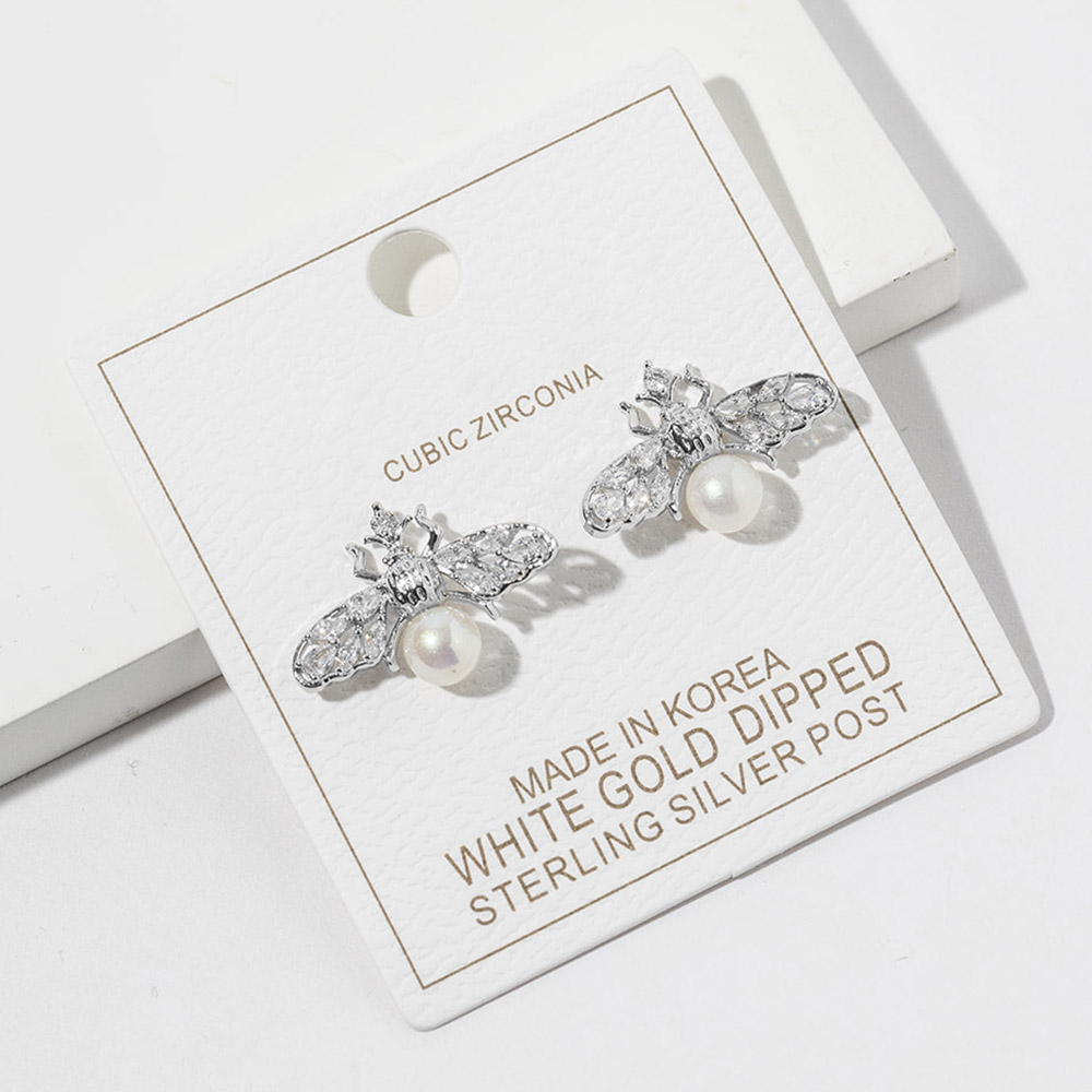 White Gold Dipped Pearl Accent CZ Stone Paved Bee Stud Earrings White Gold Dipped Pearl Accent CZ Stone Paved Bee Stud Earrings White Gold Dipped Pearl Accent CZ Stone Paved Bee Stud Earrings White Gold Dipped Pearl Accent CZ Stone Paved Bee Stud Earrings