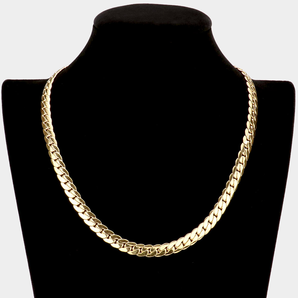Gold Dipped Textured Metal Hardware Chain Necklace