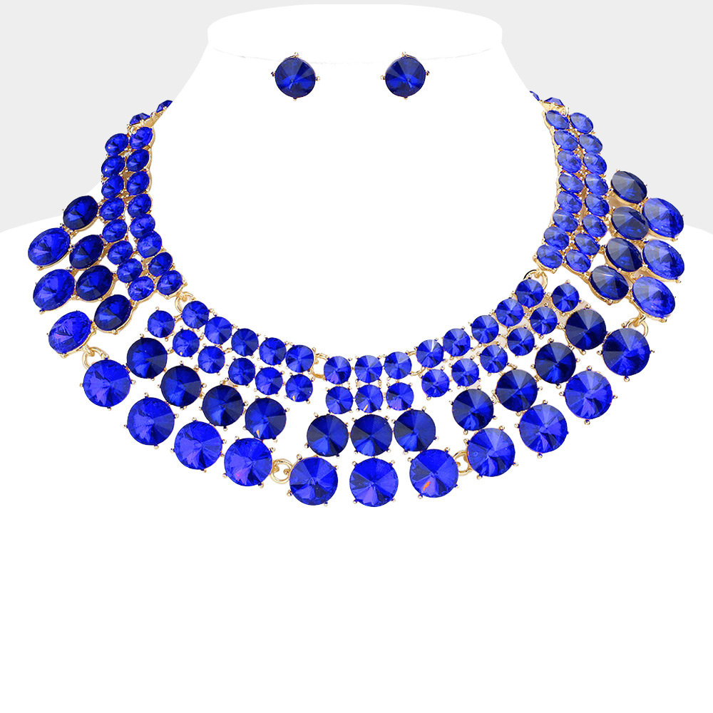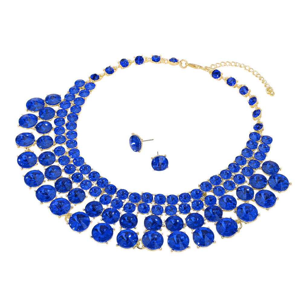 3PCS - Crystal Teardrop Accented Pendant Collar Necklace Set