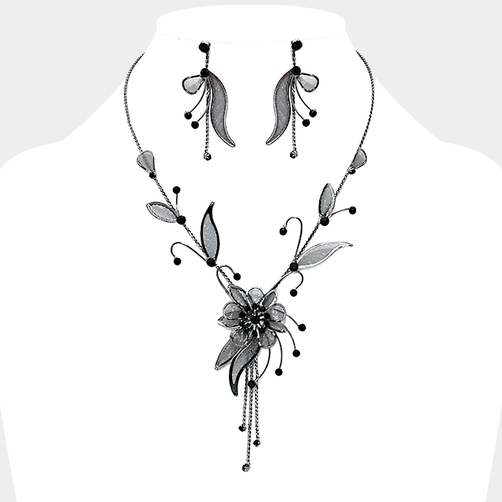Pearl Centered Bling Studded Oversized Flower Pointed Necklace