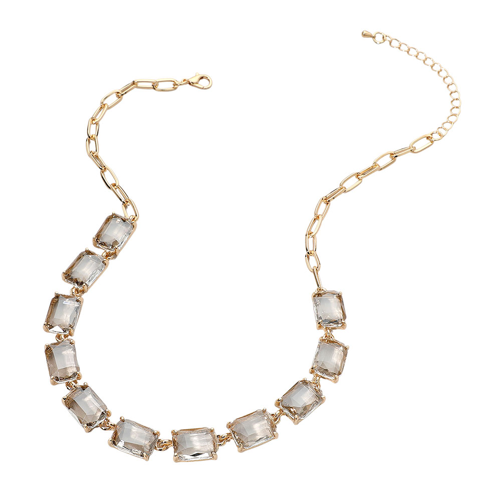 Cushion Rectangular Stone Cluster Link Evening Necklace