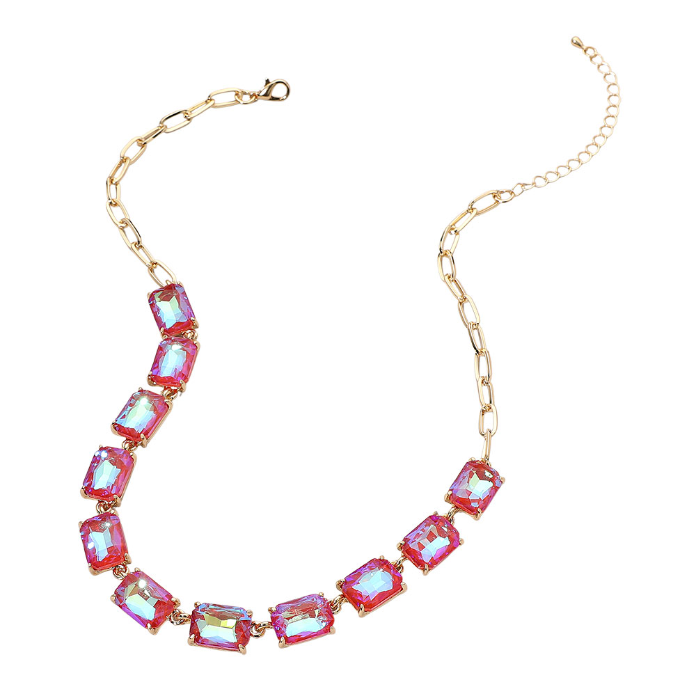 • This elegant gemstone chain necklace features a row of precisely cut stones linked with a sleek chain for a refined, modern look. Its adjustable closure ensures a comfortable fit, making it a sophisticated accessory for formal occasions, evening wear, or adding a statement touch to everyday style.