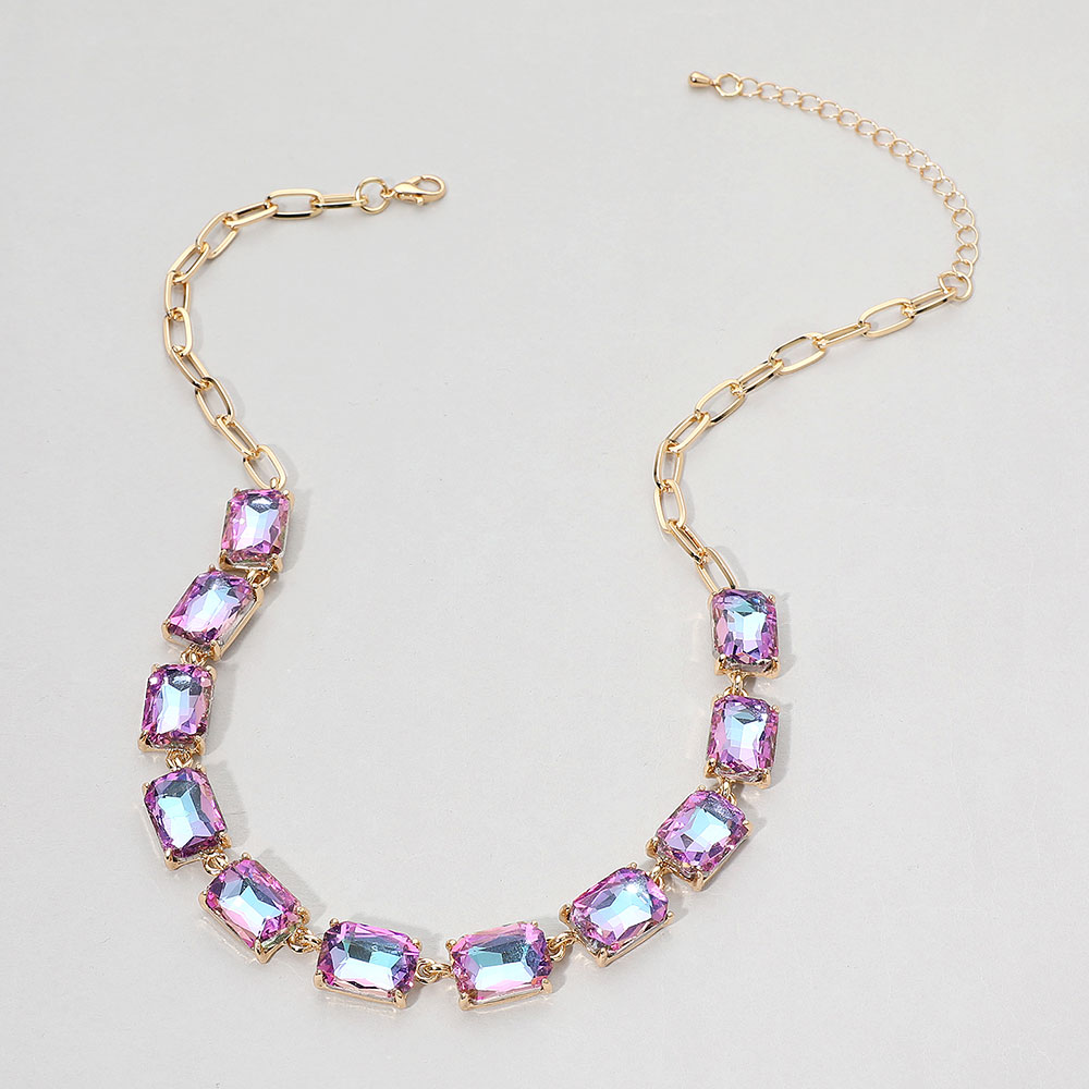 Cushion Rectangular Stone Cluster Link Evening Necklace