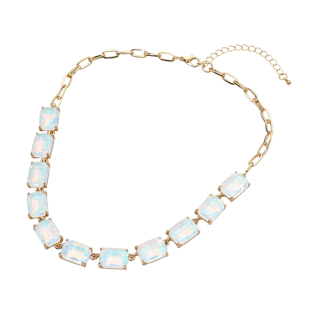 Cushion Rectangular Stone Cluster Link Evening Necklace