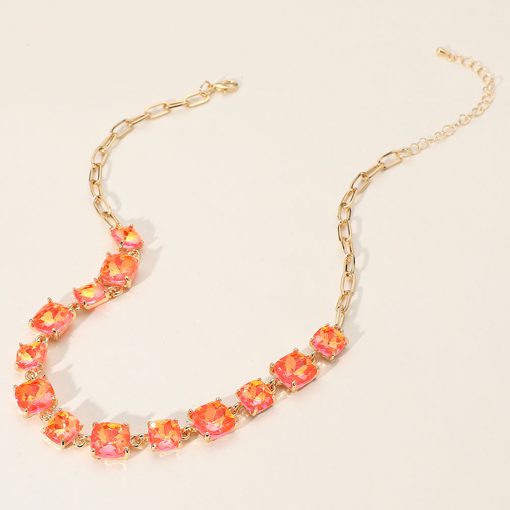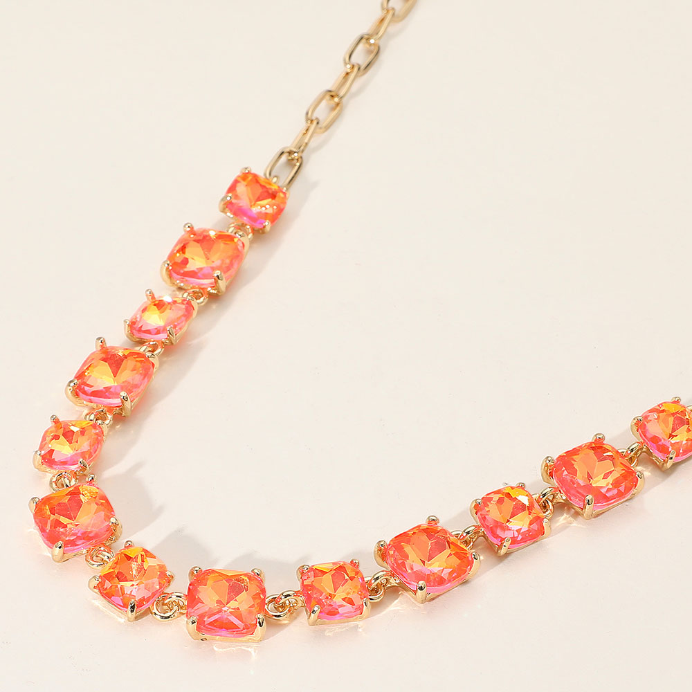 • Elevate your style with this stunning square cut gemstone statement necklace. Featuring shimmering faceted stones linked in a classic design, it offers a chic adjustable fit. Perfect for evening wear, weddings, parties, or adding a sophisticated sparkle to your everyday look.