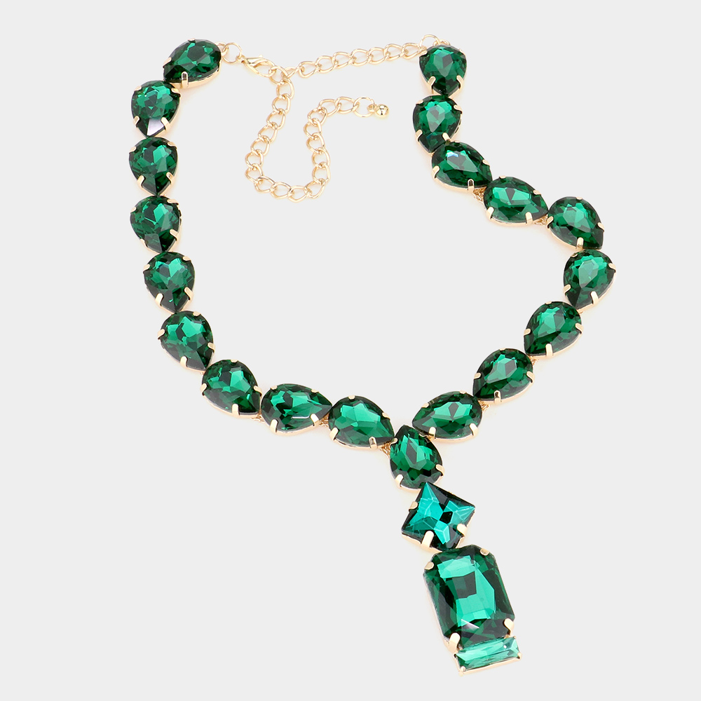 Emerald Cut Stone Cluster Pendant Pointed Teardrop Stone Cluster Link Evening Necklace