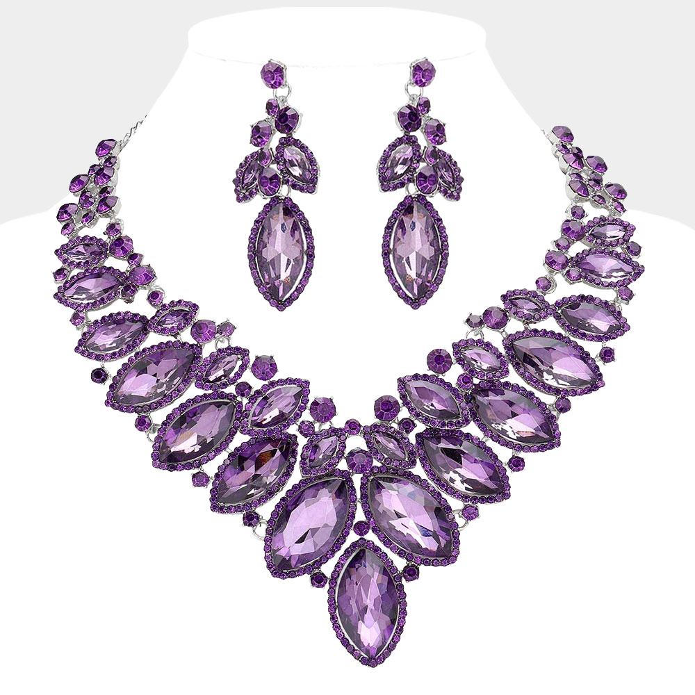 Marquise Stone Cluster Embellished Evening Necklace