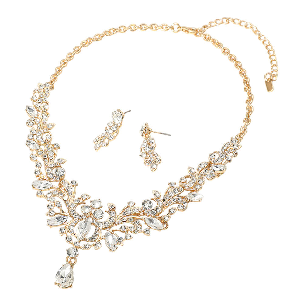 Marquise Stone Cluster Embellished Evening Necklace