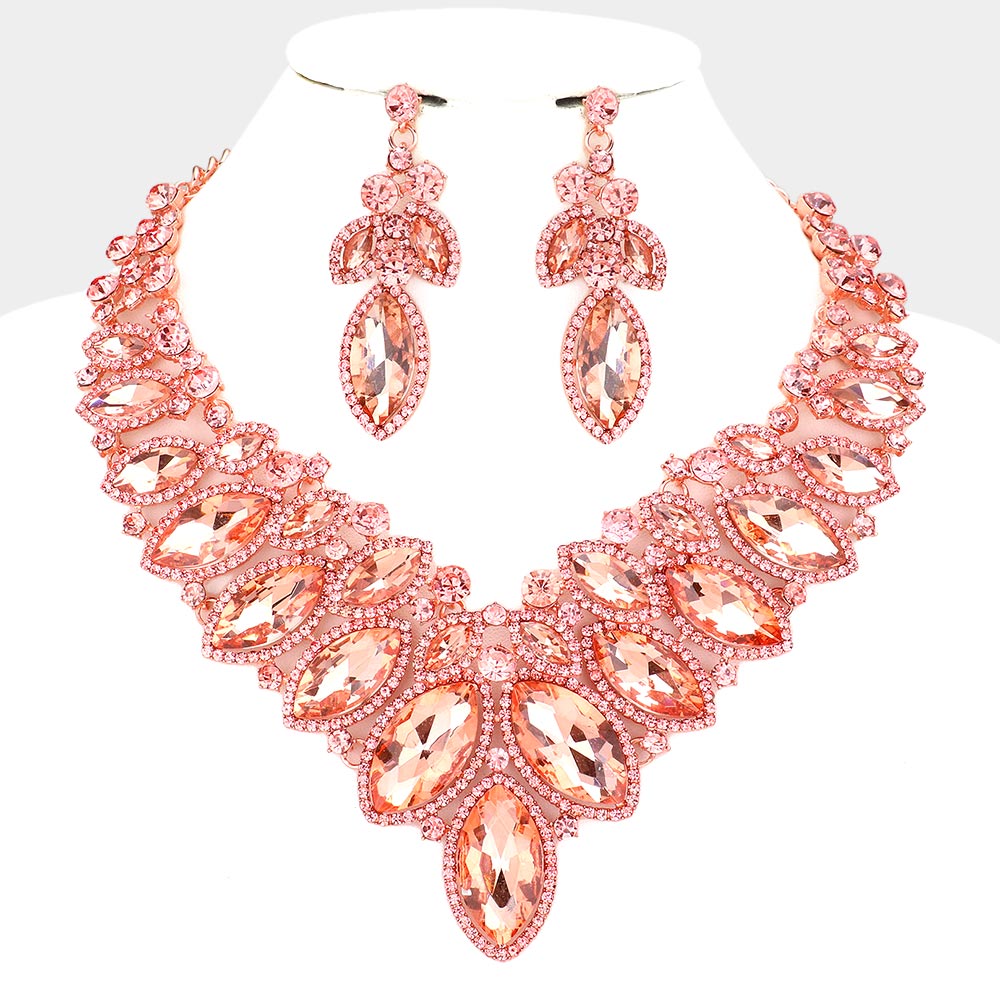 Oversized Marquise Stone Accented Dangle Evening Earrings