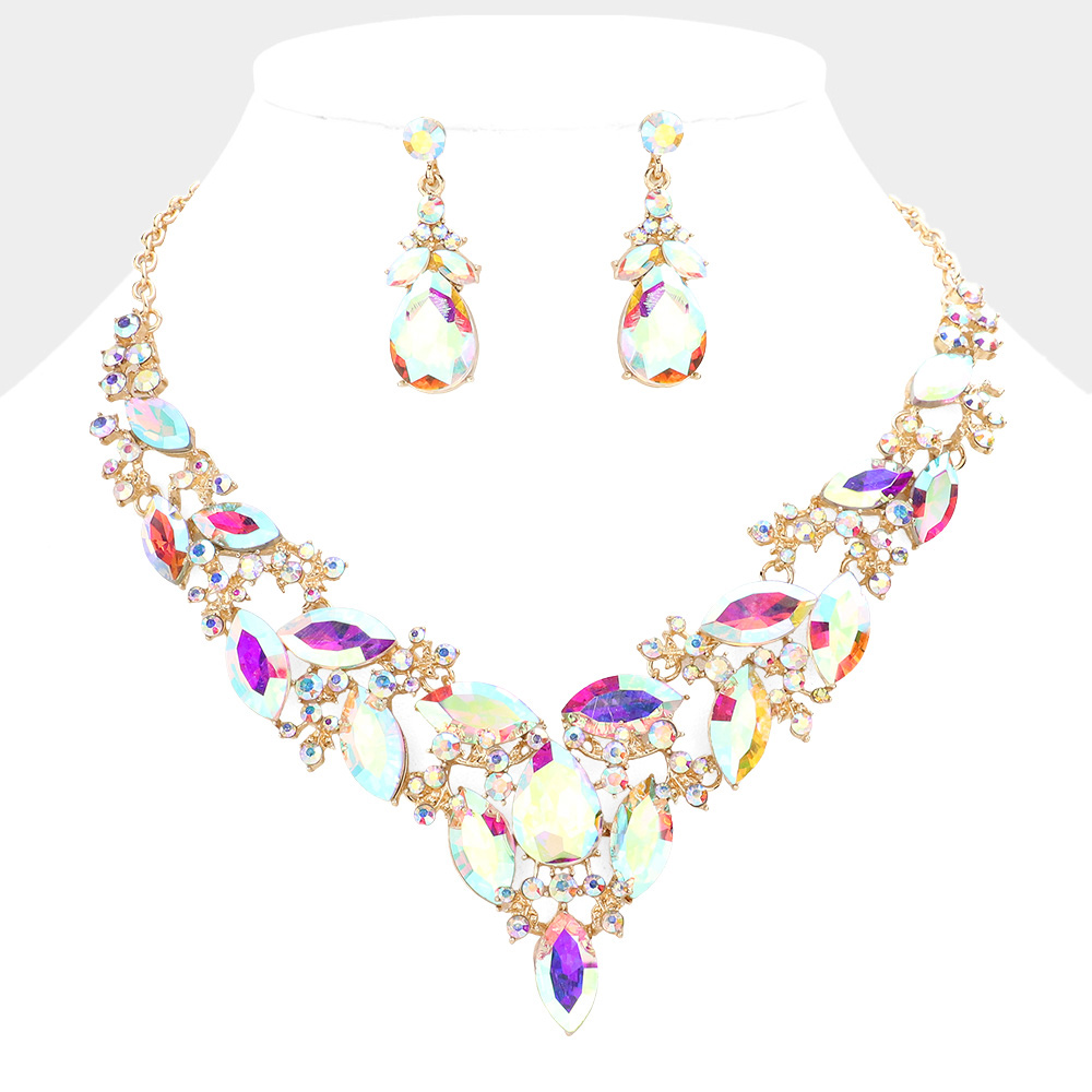 Marquise Stone Cluster Evening Necklace