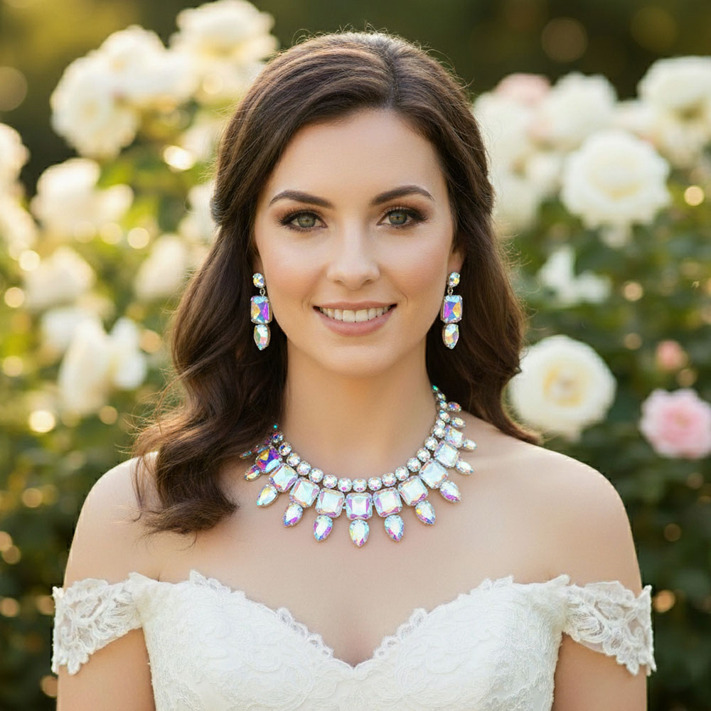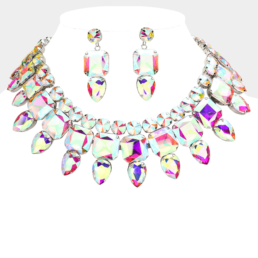 • Stunning statement jewelry set featuring a dramatic necklace and matching earrings adorned with large gemstones. Perfect for special occasions, parties, or evening events, adding glamour and sophistication to any outfit. A show-stopping accessory for an elegant, confident look.