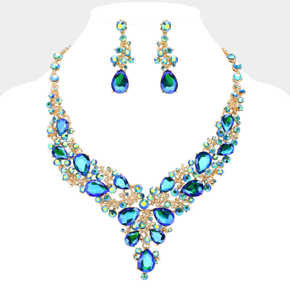 Round Teardrop Stone Accented Evening Necklace