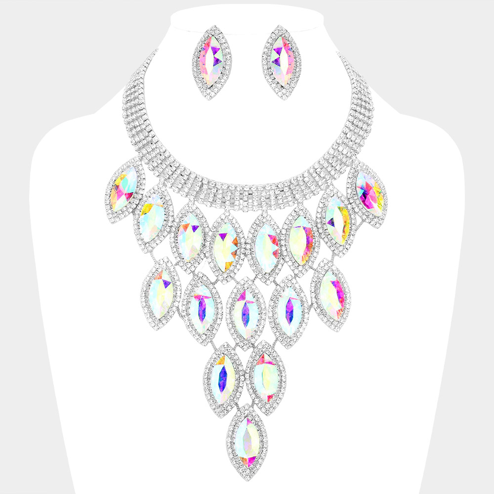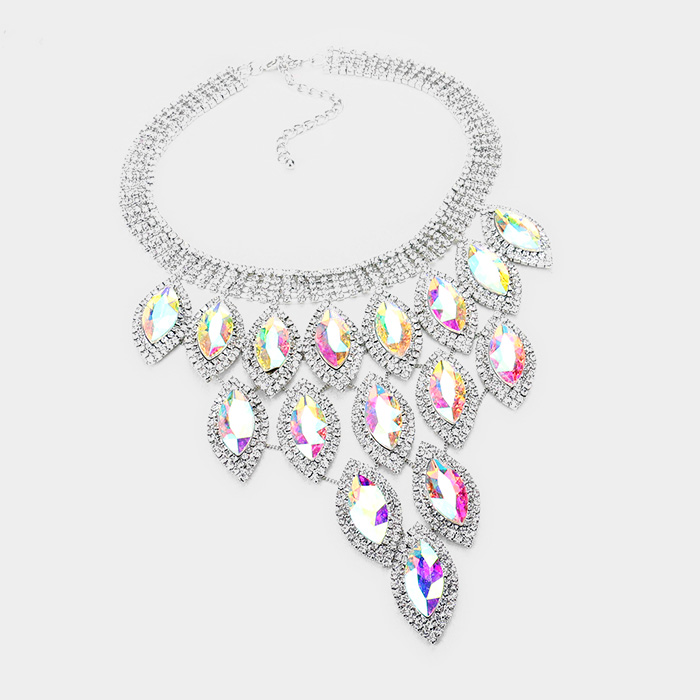 Teardrop Stone Leaf Cluster Vine Statement Evening Necklace