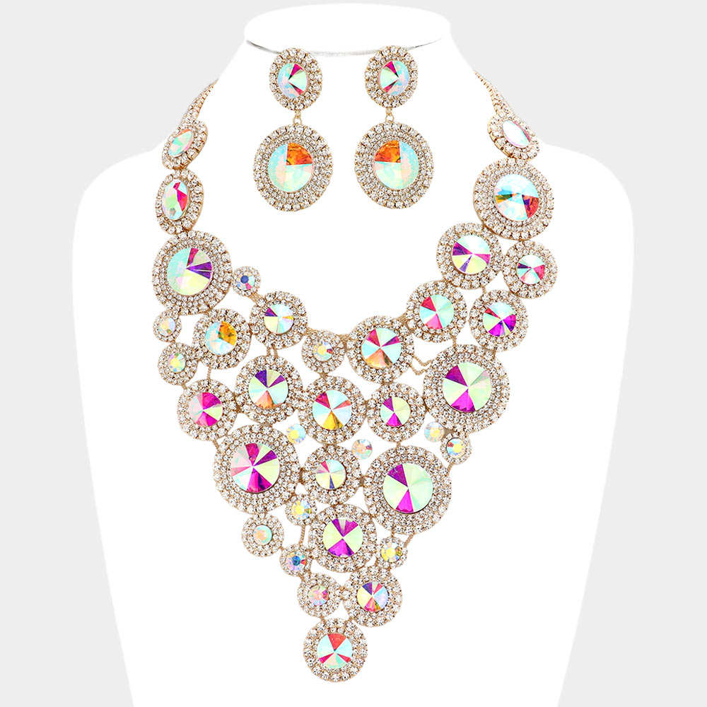 Crystal Rhinestone Trim Teardrop Collar Evening Necklace